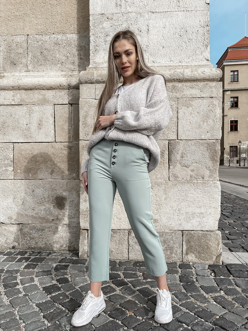 Pastelovotyrkysové nohavice MENDES