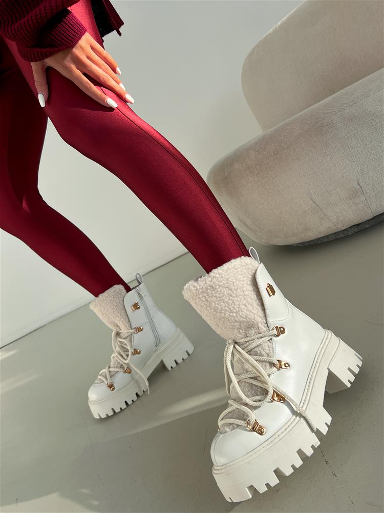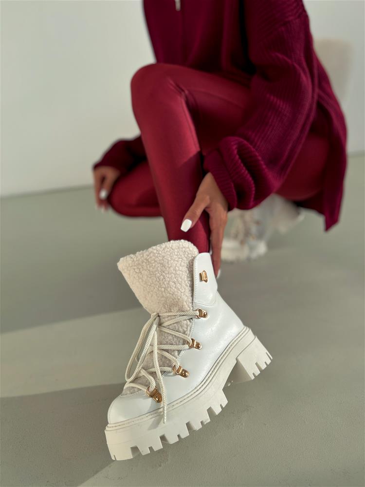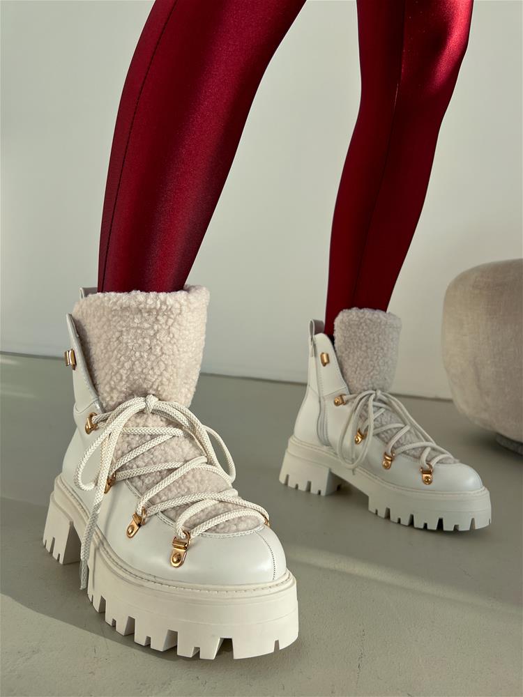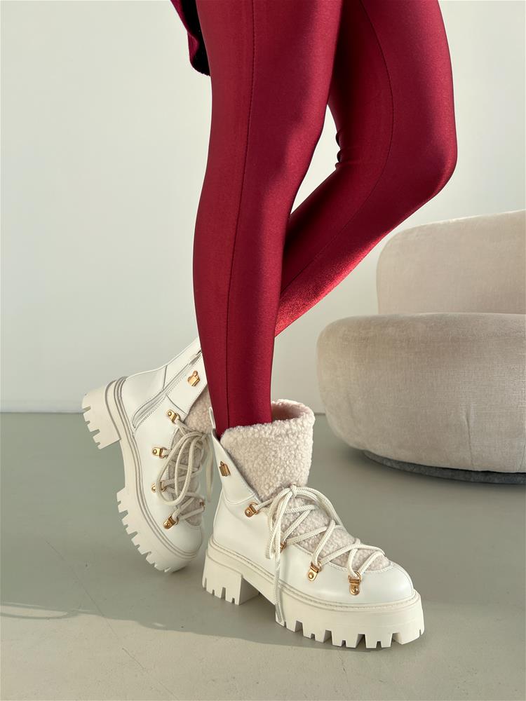Členkové topánky na výraznej traktorovej podrážke. Zvršok sa skladá z viacerých materiálov a ozdobných prvkov. Z vnútornej bočnej strany je zips na zapínanie. Vnútorná časť je zateplená.
