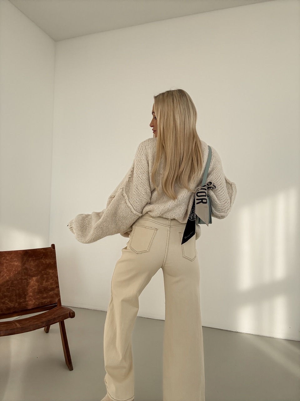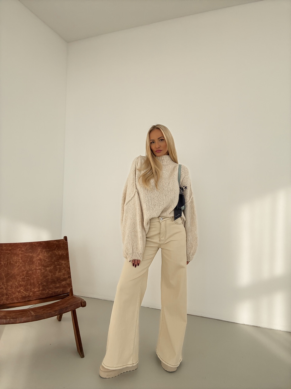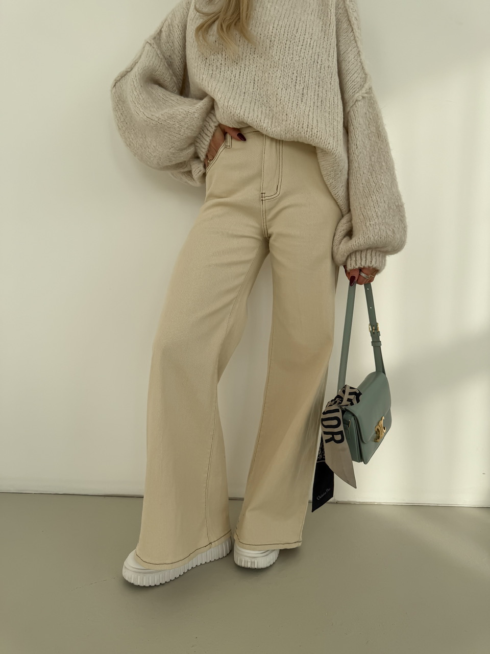 Maslové zvonové džínsy sú dokonalým spojením pohodlia a štýlu. Ich zvonový strih sa jemne rozširuje od kolien nadol, čo dodáva outfitu retro nádych a zvýrazňuje vašu postavu. Zapínanie na zips a gombíky, putkami na opasok, ktoré vám umožnia pridať obľúbený doplnok podľa vášho vkusu.