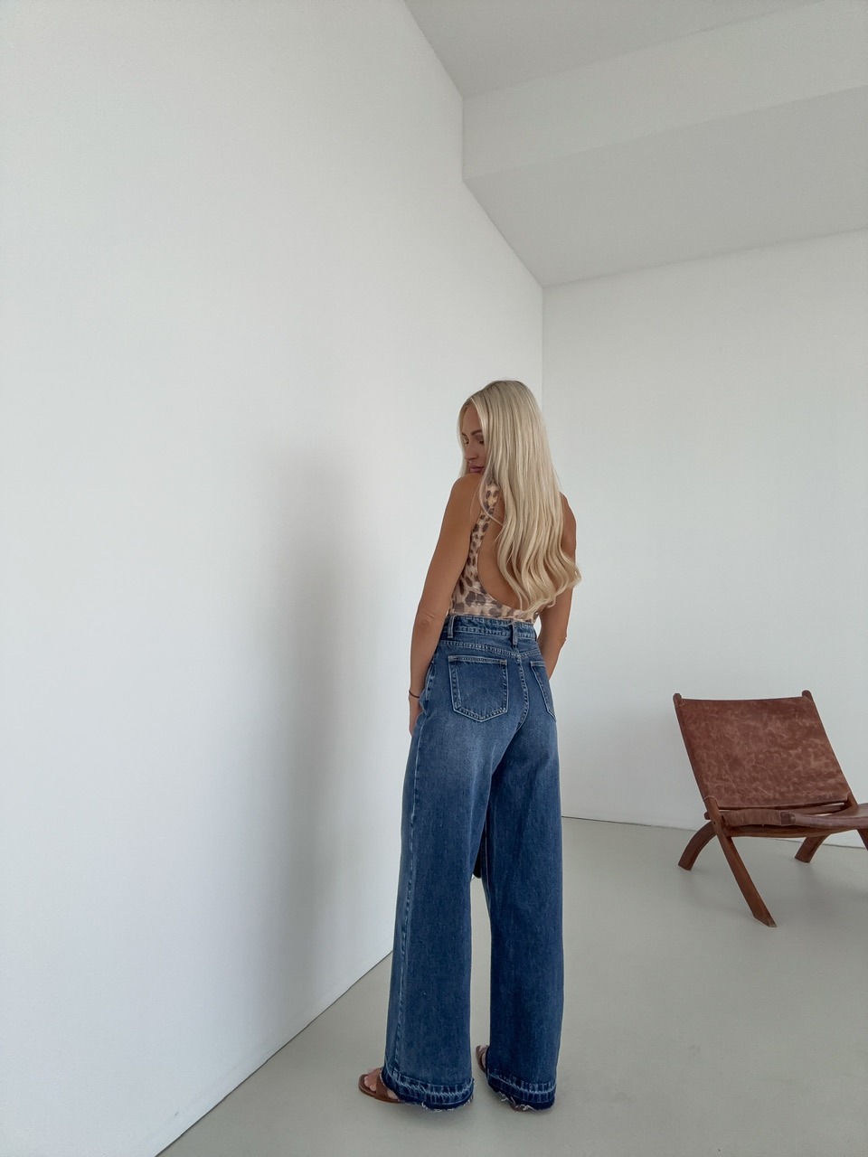 Tieto nadčasové modré džínsy sú ideálnym základom každého šatníka. Klasické zapínanie na zips a gombík, s putkami na opasok. Vyrobené z kvalitného denimu, ponúkajú maximálne pohodlie pri nosení a skvelo sa prispôsobia vašej postave. Jednoduchý strih s rovným zakončením nohavíc zaručí univerzálne využitie.