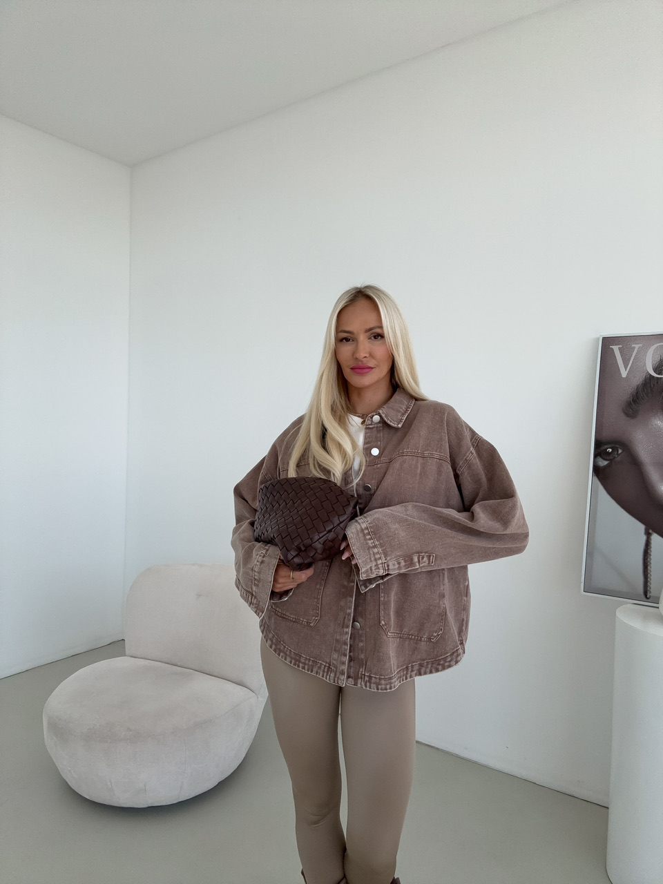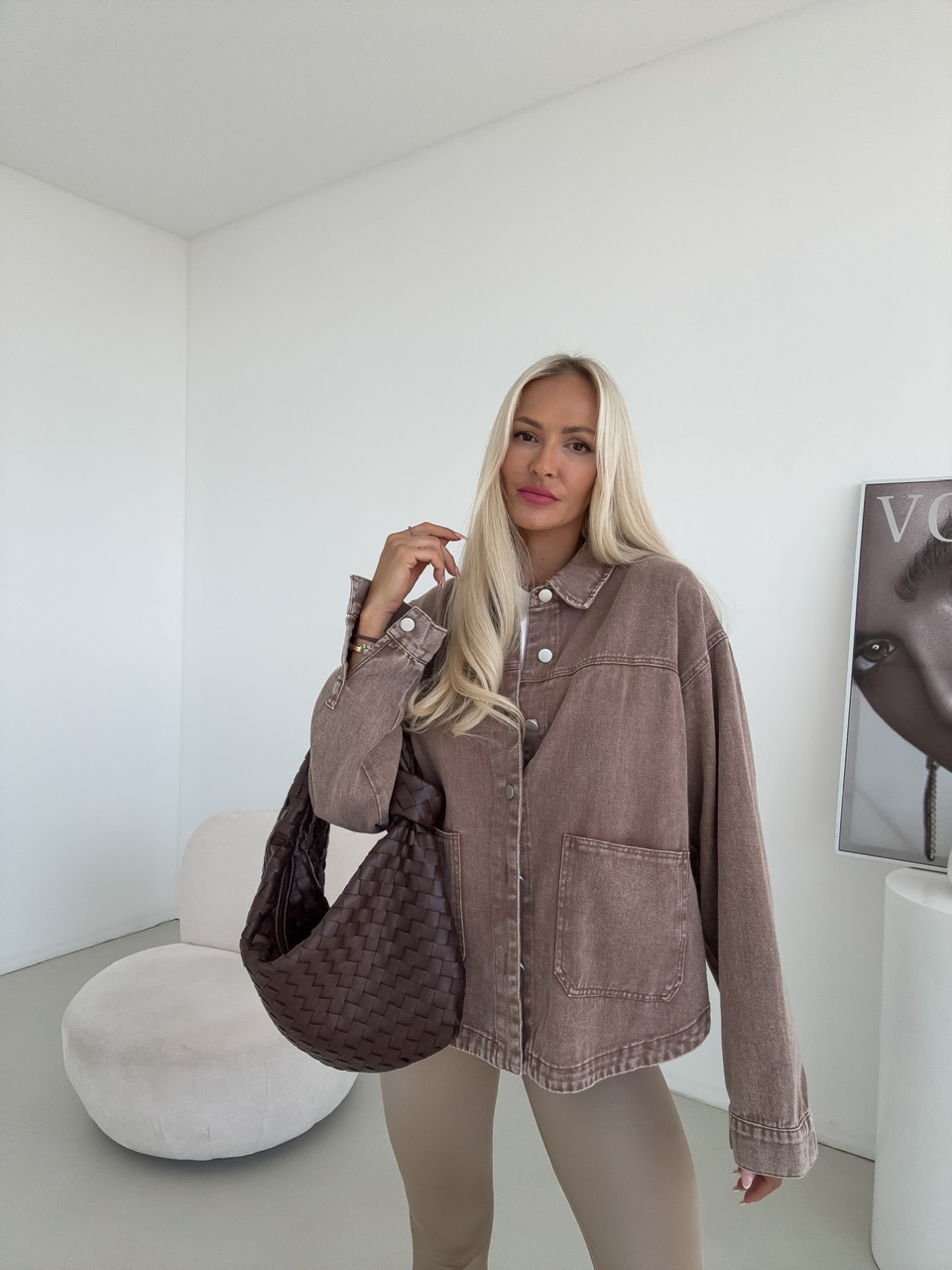 Trendy a praktická denimová bunda. Kratší oversize strih pôsobí ležérne, no zároveň veľmi štýlovo. Vďaka denimu je bunda odolná a vhodná na prechodné obdobia.Praktické dve predné vrecká a zapínanie na patentné gombíky dodávajú kúsku moderný, ale nadčasový vzhľad. Ľahko ju skombinujete s džínsami, nohavicami alebo šatami a vždy vytvoríte originálny outfit.