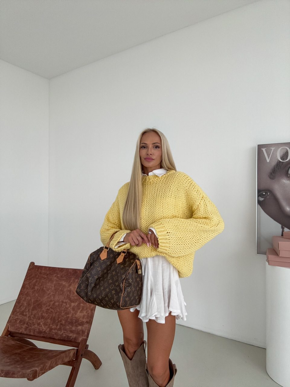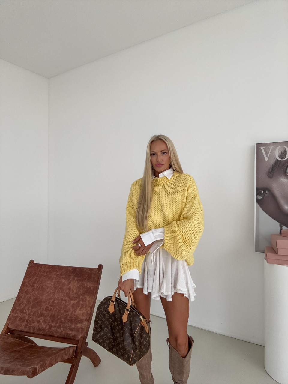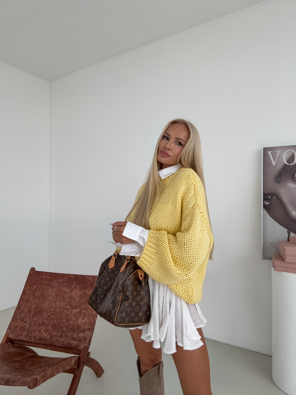 Zvýraznite svoj štýl a cíťte sa pohodlne v tomto pletenom pulóvri. Hrubší úplet s výraznou štruktúrou dodáva outfitu ležérny, no zároveň trendy vzhľad. Voľnejší strih zaručuje komfort a voľnosť pohybu, vďaka čomu je ideálny na každodenné nosenie počas chladnejších dní. Ľahko sa kombinuje s džínsami, nohavicami či sukňou. Skvelý kúsok, ktorý nesmie chýbať vo vašom šatníku.