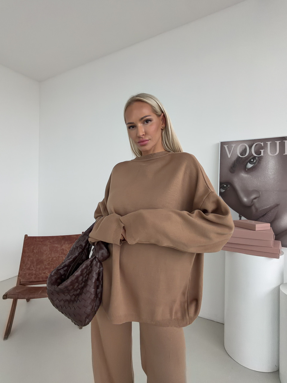Pohodlný a nadčasový kúsok, ktorý sa stane základom vášho šatníka. Tento set je ušitý v štýlovom oversize strihu, ktorý zaručuje maximálne pohodlie a voľnosť pohybu. Jemný úplet je príjemný na dotyk a ideálny do chladnejších dní. Perfektný kúsok, ktorý si obľúbite pre jeho jednoduchosť a pohodlie.
