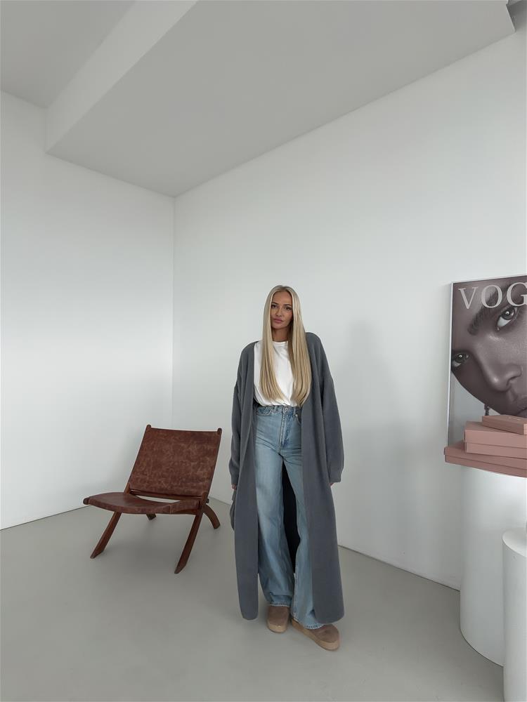 Tento mäkký a príjemný dlhý kardigán v neutrálnom je ideálnym kúskom do vášho šatníka. Je univerzálny, pohodlný a ľahko kombinovateľný s akýmkoľvek outfitom. Bez zapínania, minimalistický dizajn. Doprajte si kúsok, ktorý vás zahreje a zároveň doplní váš štýl nadčasovou jednoduchosťou.