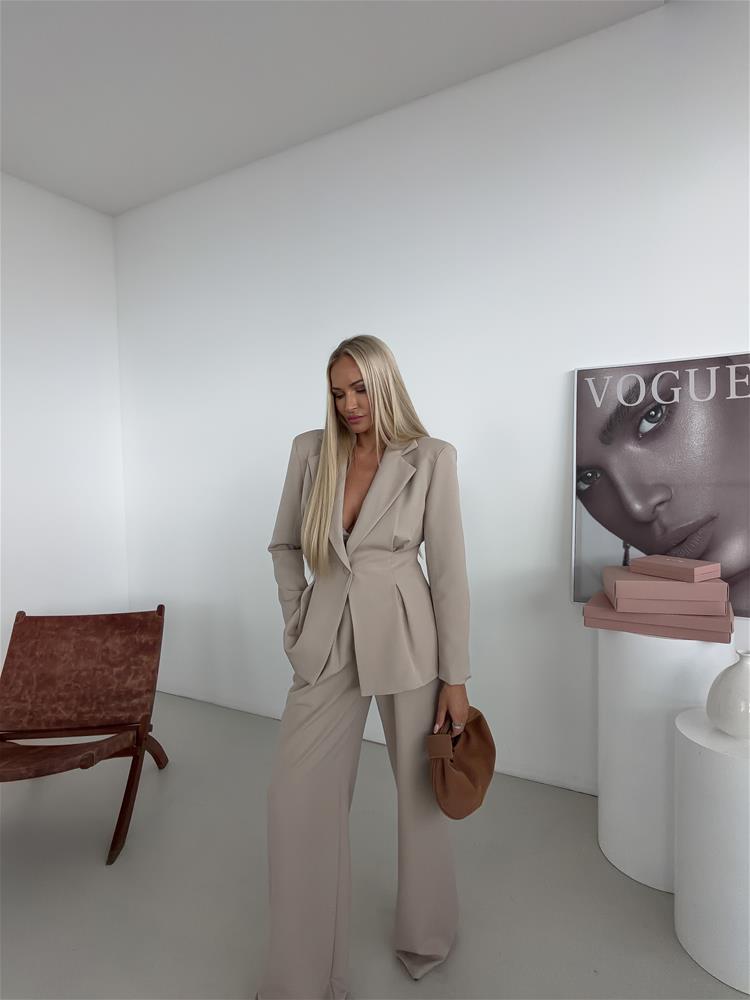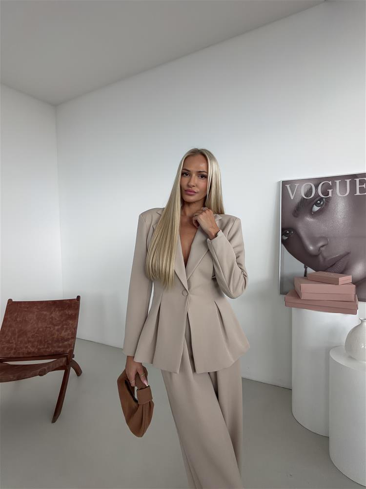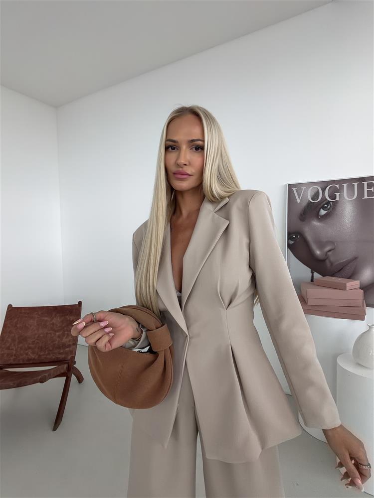 Toto nadčasové dámske sako je ideálnym kúskom do vášho šatníka. Vďaka svojmu minimalistickému strihu s jedným gombíkom a jemne vypasovaným efektom krásne zvýrazní postavu a pôsobí sofistikovane s vypchávkami na pleciach. Vyrobené z kvalitného, príjemného materiálu, ktorý zaručí komfort pri nosení počas celého dňa.