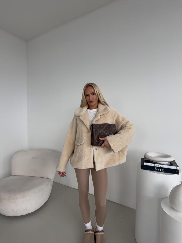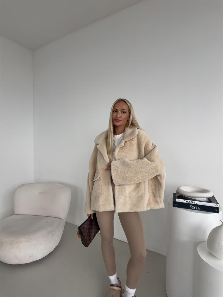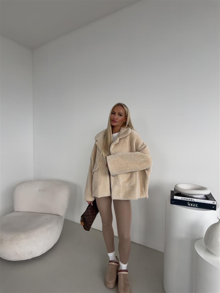 Elegantný krátky kabát v jemnej béžovej farbe je ideálnym kúskom na prechodné obdobie. Vyrobený z mäkučkého, hebkého materiálu, ktorý pôsobí luxusne a zároveň poskytuje maximálne pohodlie. Nadčasový strih s golierom a výraznými prednými vreckami dodáva kabátu štýlový a moderný vzhľad. Vhodný na: jesenné a zimné dni, bežné nosenie aj elegantné outfity. Tento kabát skvele doplní basic kúsky aj výrazné doplnky — je univerzálnym základom šatníka, ktorý nikdy nevyjde z módy.