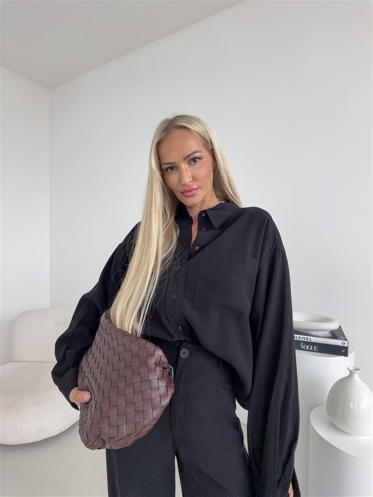 Elegantná košeľa s ľahko padavým materiálom, ktorá spája sofistikovaný vzhľad s pohodlím. Vďaka svojmu minimalistickému dizajnu a voľnému strihu sa hodí na každodenné nosenie aj do formálnejších outfitov. Klasický golier, náprsné vrecko, zapínanie na gombíky po celej dĺžke. Univerzálny kúsok, ktorý dodá tvojmu outfitu čistý a moderný vzhľad – skvelo sa kombinuje.