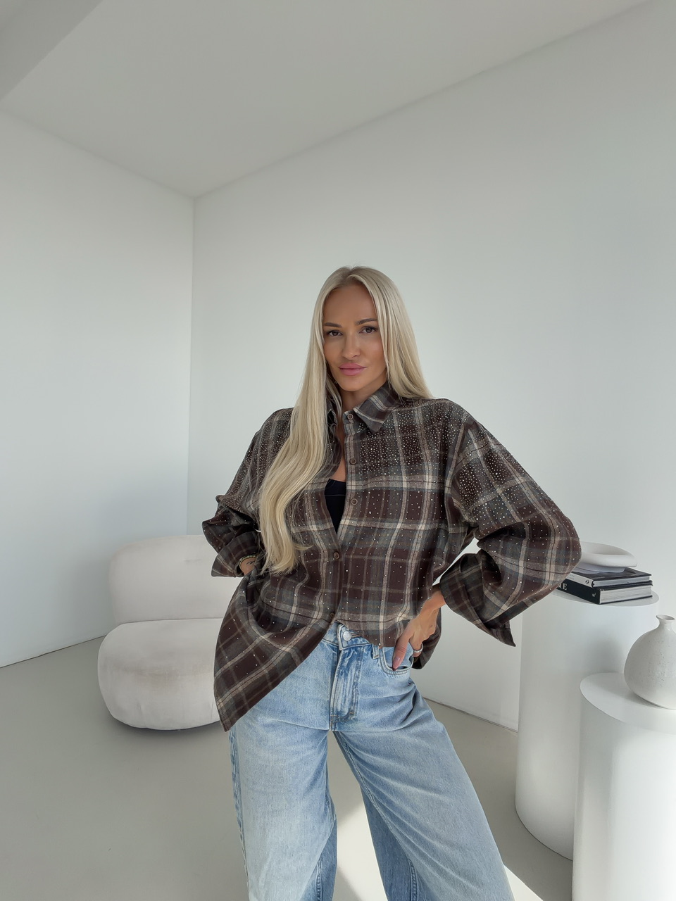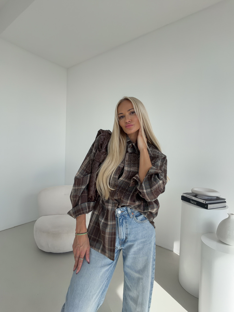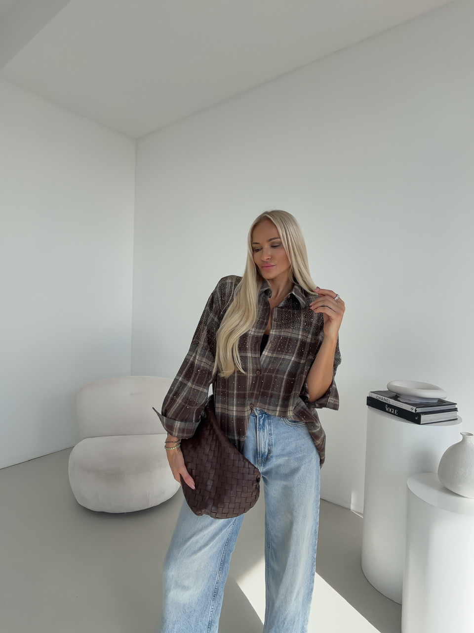 Károvaná košeľa s jemným trblietavým detailom spája ležérny štýl s eleganciou, doplnený drobnými kamienkami jej dodáva originálny vzhľad, ktorý vynikne pri každej príležitosti od bežného dňa po večerné stretnutie. Vyrobená z príjemného bavlneného materiálu, ktorý zabezpečuje pohodlie počas celého dňa. Vďaka klasickému strihu sa ľahko kombinuje – noste ju samostatne, prehodenú cez tričko alebo zastrčenú do nohavíc.