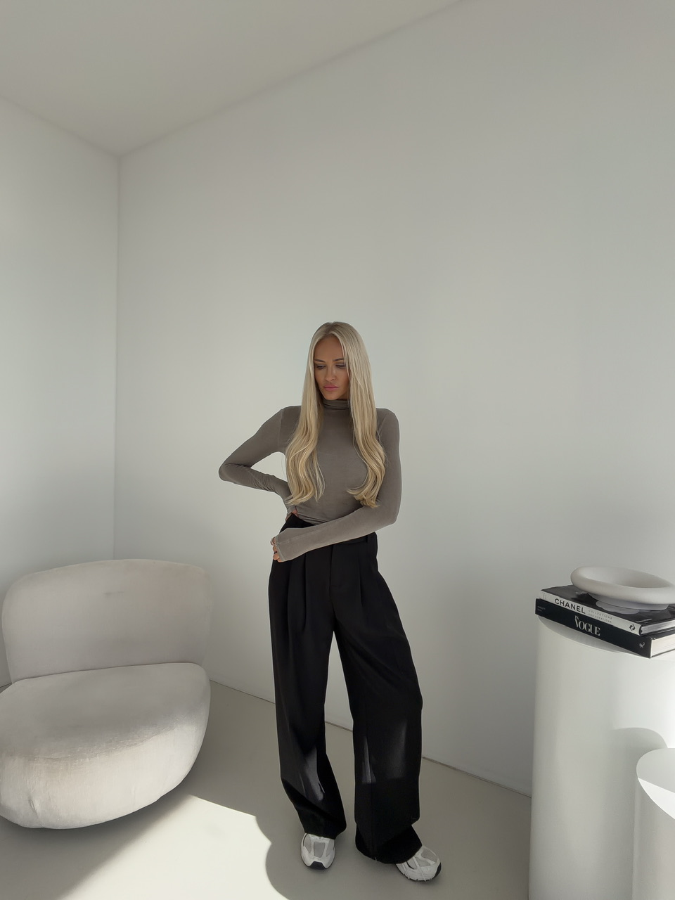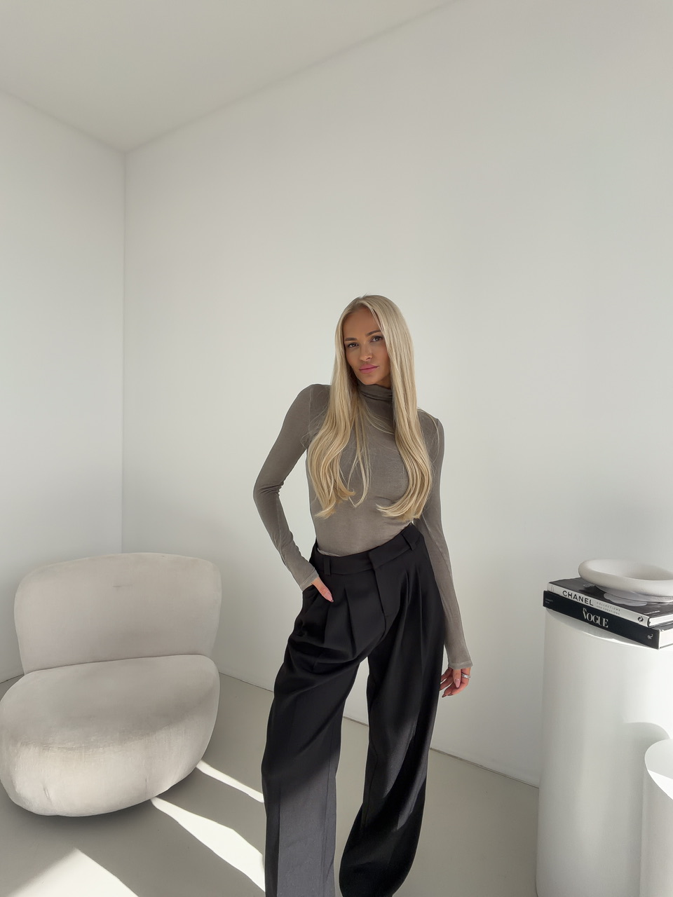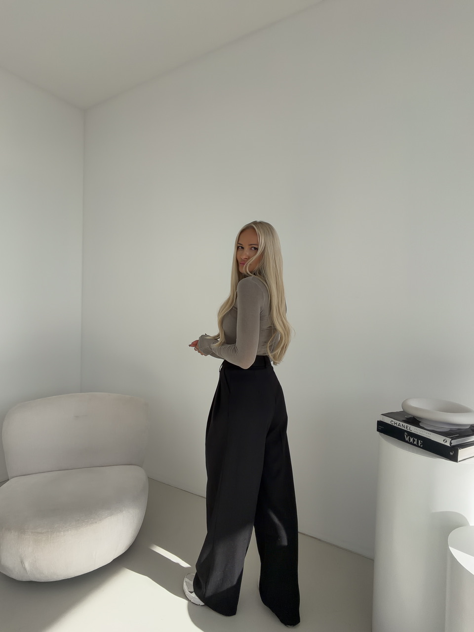 Tieto elegantné nohavice sú dokonalým spojením pohodlia a štýlu. Vďaka precíznemu strihu s pukmi pôsobia uhladene a profesionálne, no zároveň si zachovávajú moderný a uvoľnený vzhľad.Vyrobené z kvalitného, mierne lesklého materiálu, ktorý sa krásne prispôsobí postave a drží tvar. Nohavice majú zapínanie na háčik a zips, pútka na opasok a elegantný pád, ktorý predlžuje siluetu. Ideálne na bežné nosenie, do práce či na formálnejšie príležitosti – jednoducho kúsok, ktorý využiješ počas celého roka.