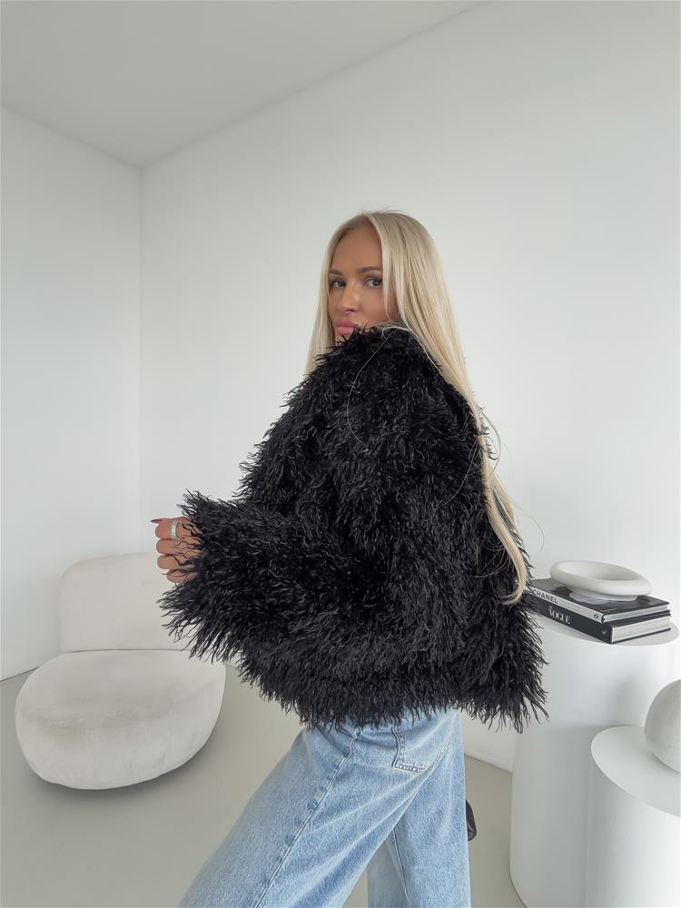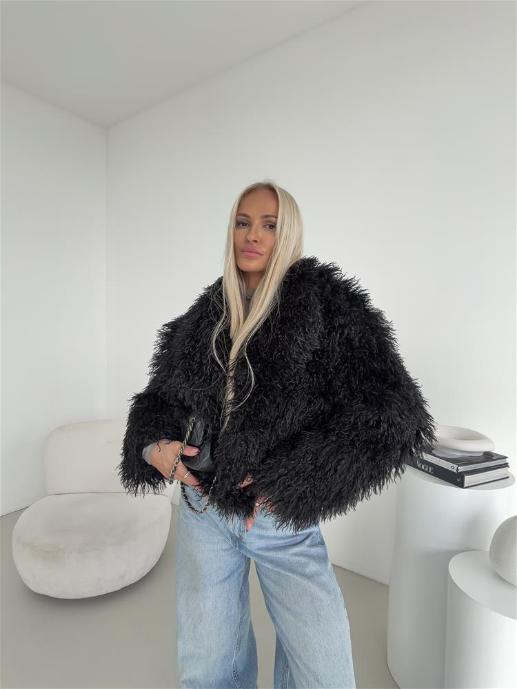 Zababuš sa do tepla a štýlu s týmto mäkkým kožúškom s dlhým vlasom. Jeho nadýchaná štruktúra a pohodlný strih ti dodajú dokonalý zimný look s nádychom luxusu. Vyrobený z príjemného, hrejivého materiálu, ktorý pôsobí ako umelá vlna, no je ľahký a pohodlný na nosenie. Kožuch má bočné vrecká a zapínanie na skrytý háčik. Tento kúsok vynikne v kombinácii s džínsami, koženými nohavicami alebo elegantnými šatami – jednoducho must-have pre chladné dni.