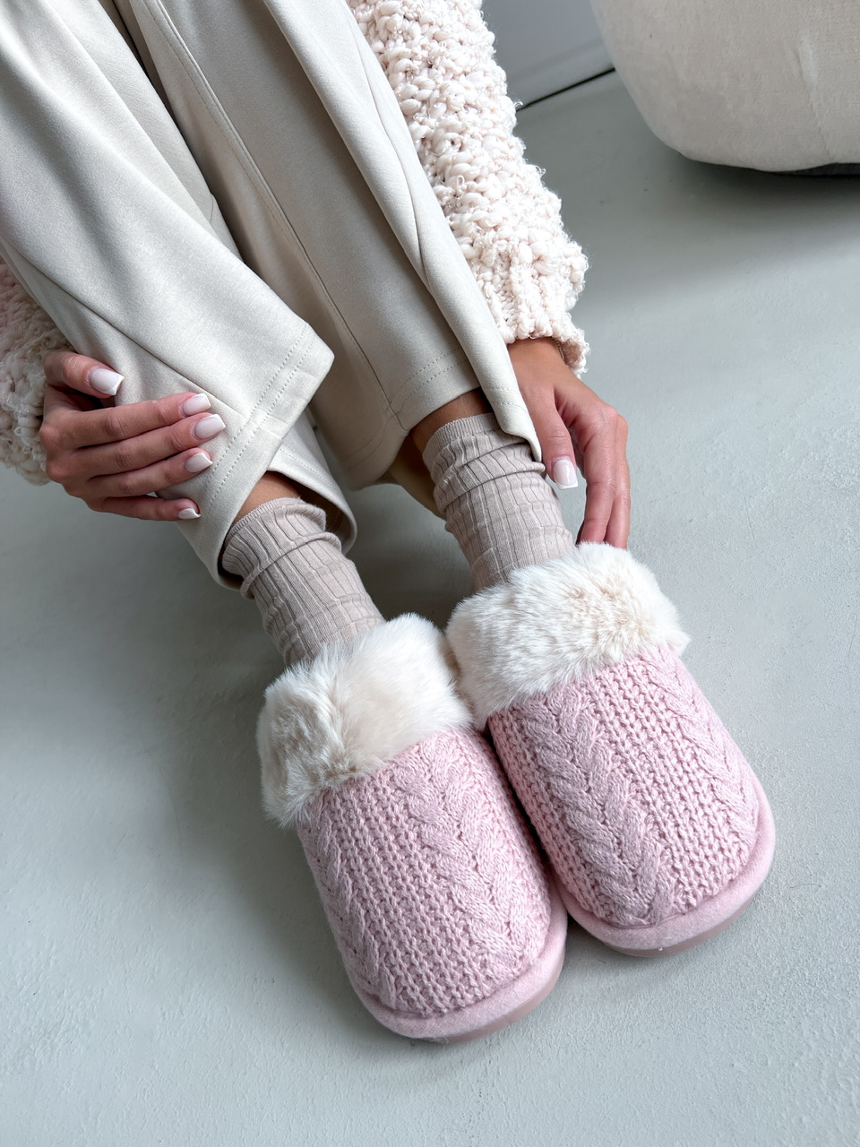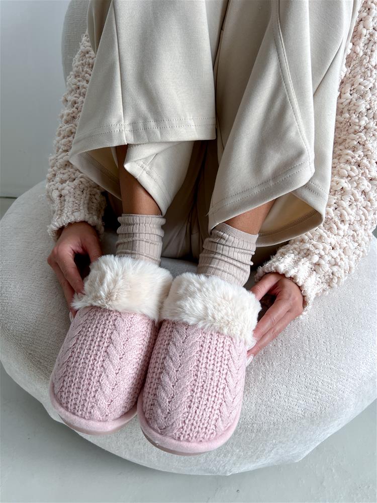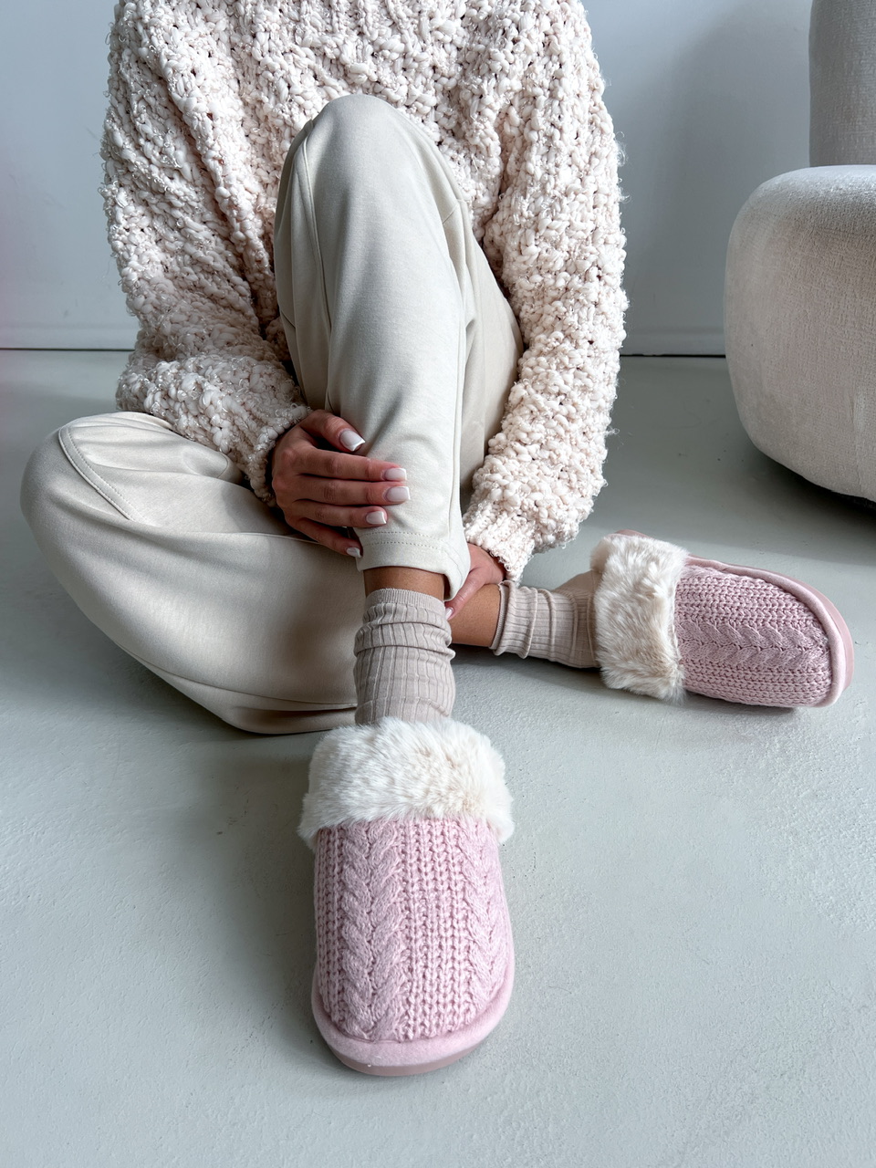 Vlnené papuče s otvorenou pätou. Vnútorná časť je zateplená jemnou kožušinou.