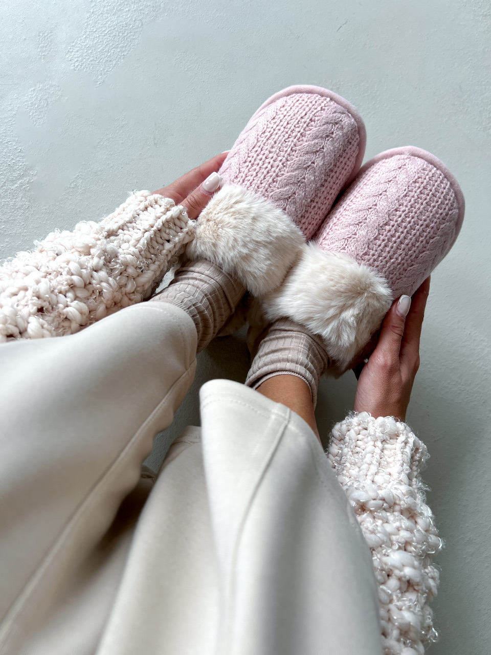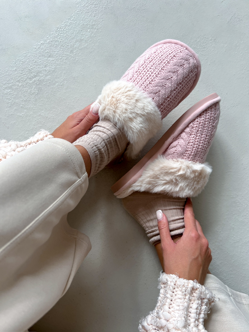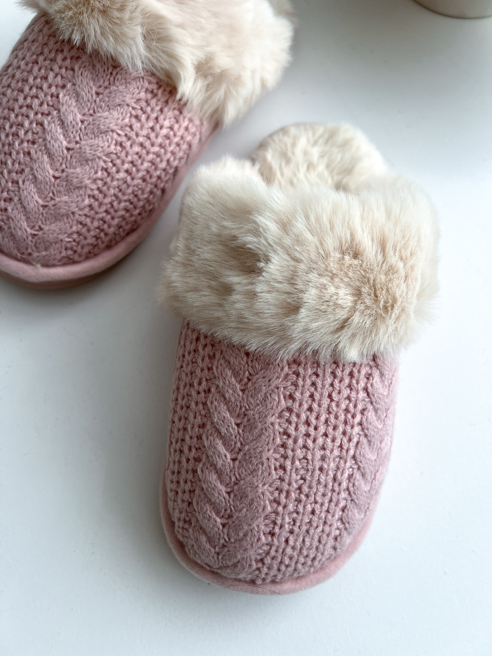 Vlnené papuče s otvorenou pätou. Vnútorná časť je zateplená jemnou kožušinou.