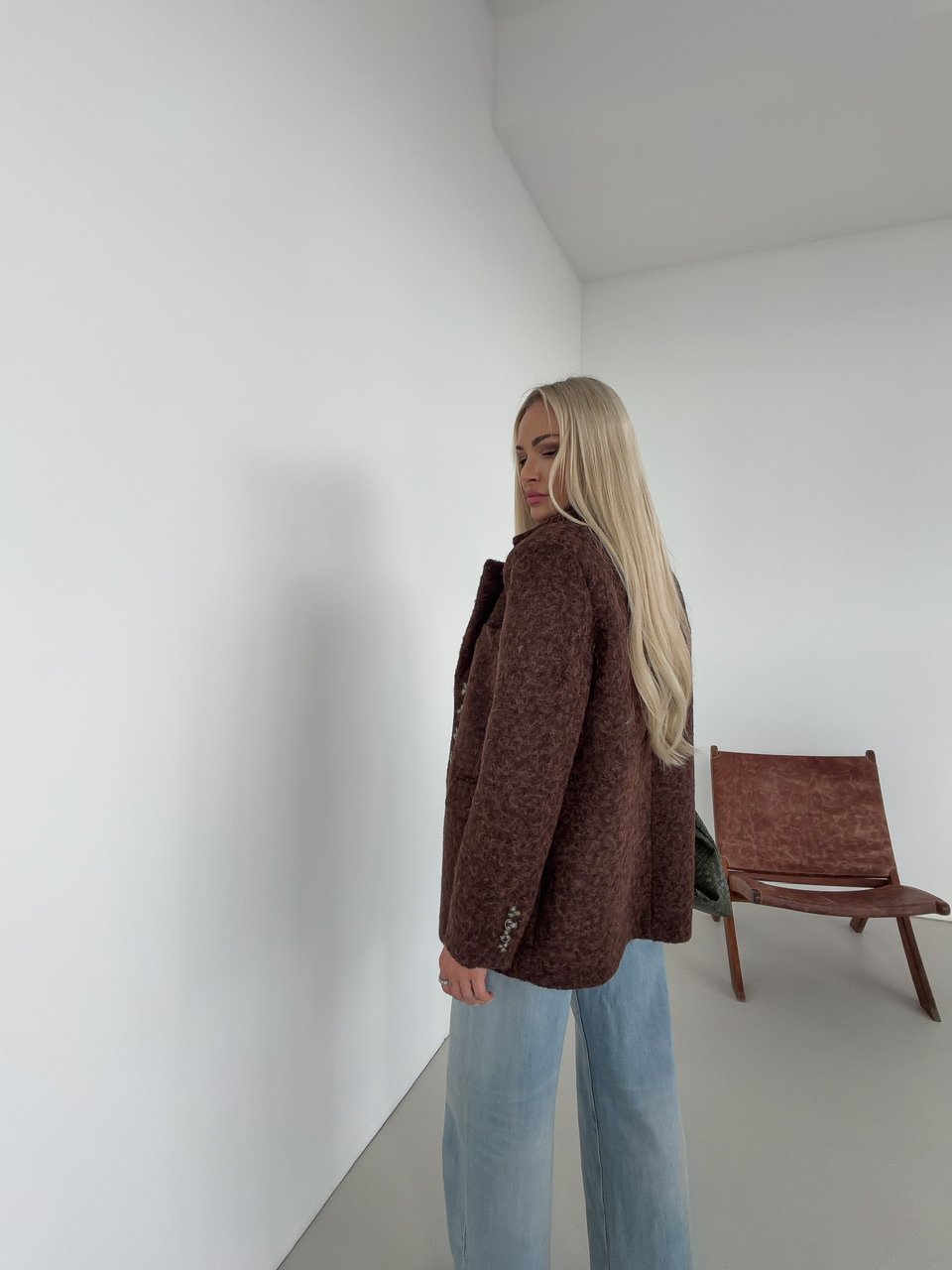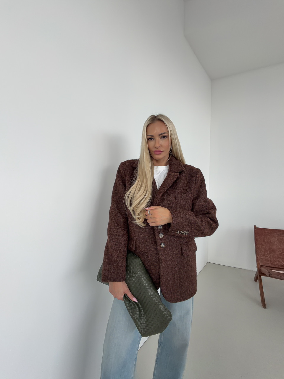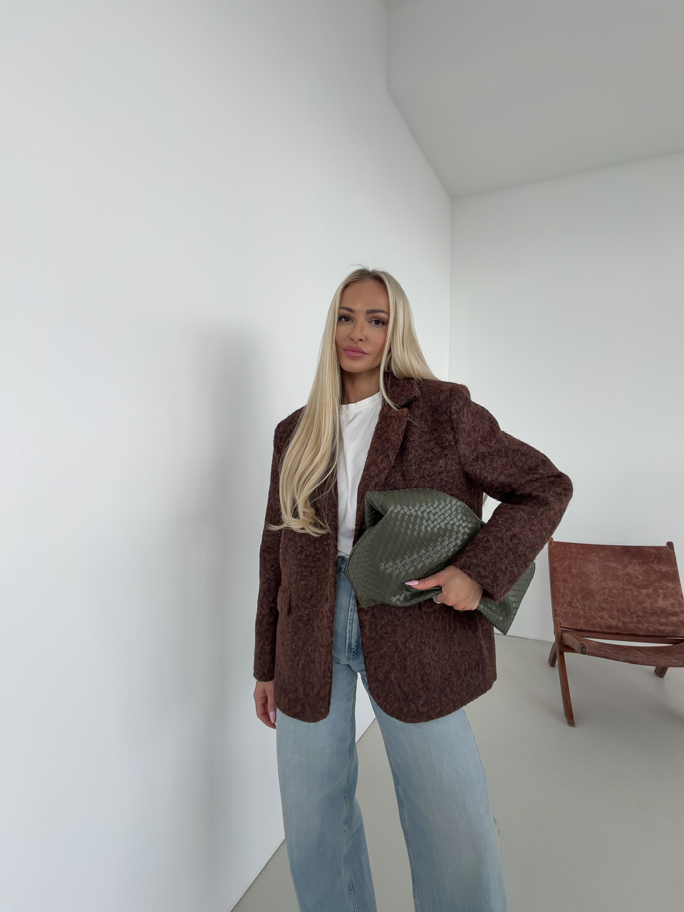 Elegantný kabát s jemným chĺpkom, ktorý spája štýl a pohodlie v jednom kúsku. Je ideálny na prechodné obdobie, no vďaka svojej mäkkej podšívke ťa zahreje aj počas chladnejších dní. Kabát má klasický strih, výrazné gombíky a praktické predné vrecká, ktoré dodávajú celkovému dizajnu sofistikovaný nádych.