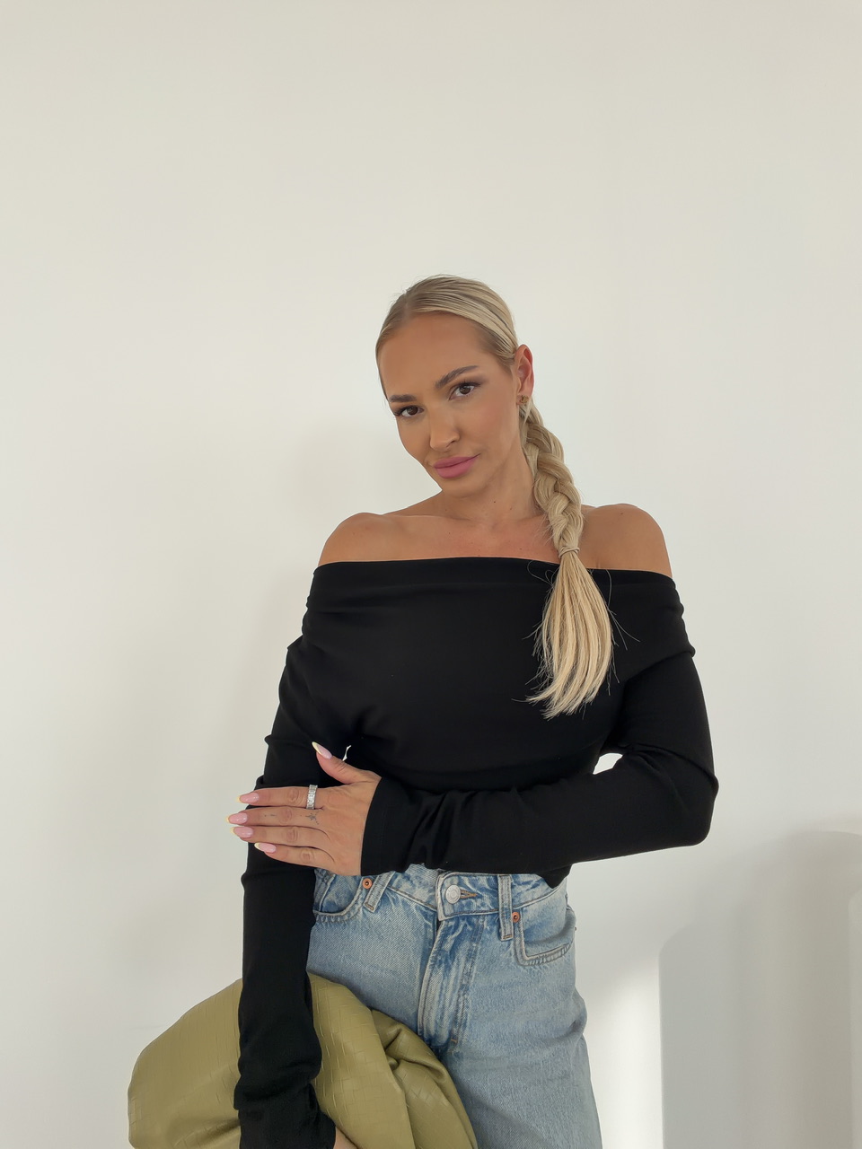 Mäkučký, príjemne pružný basic top, ktorý využiješ každý deň. Hladký úplet krásne splýva, neškriabe a drží tvar. Jednoduchý strih s dlhým rukávom je ideálny na samostatné nosenie aj vrstvenie pod sako, sveter či košeľu.