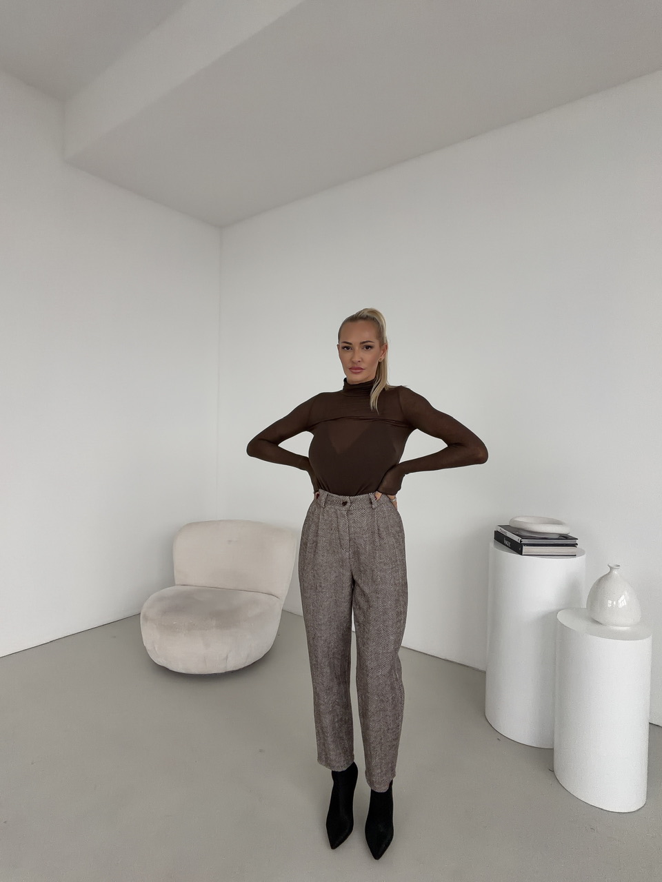 Nohavice s pútkami na opasok sú praktickým a štýlovým kúskom do každého šatníka. Bočné vrecká poskytujú pohodlné miesto na drobnosti alebo na zahriatie rúk, zatiaľ čo pútkami na opasok si ich môžete jednoducho kombinovať s rôznymi opaskami a doplnkami. Nohavice sú navrhnuté tak, aby ponúkali komfort a nadčasový vzhľad vhodný na každodenné nosenie aj do práce či na voľný čas.