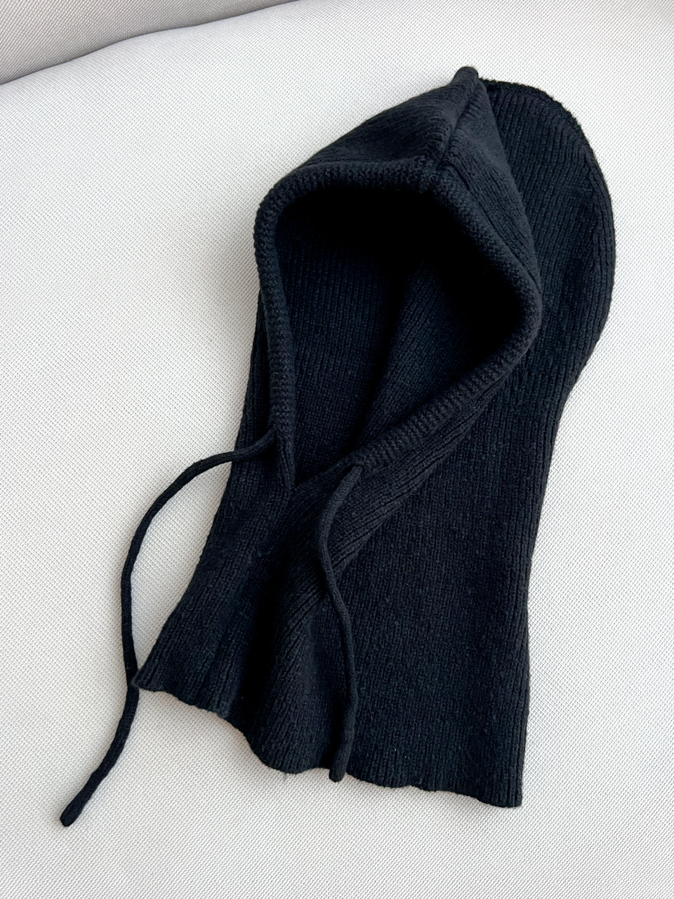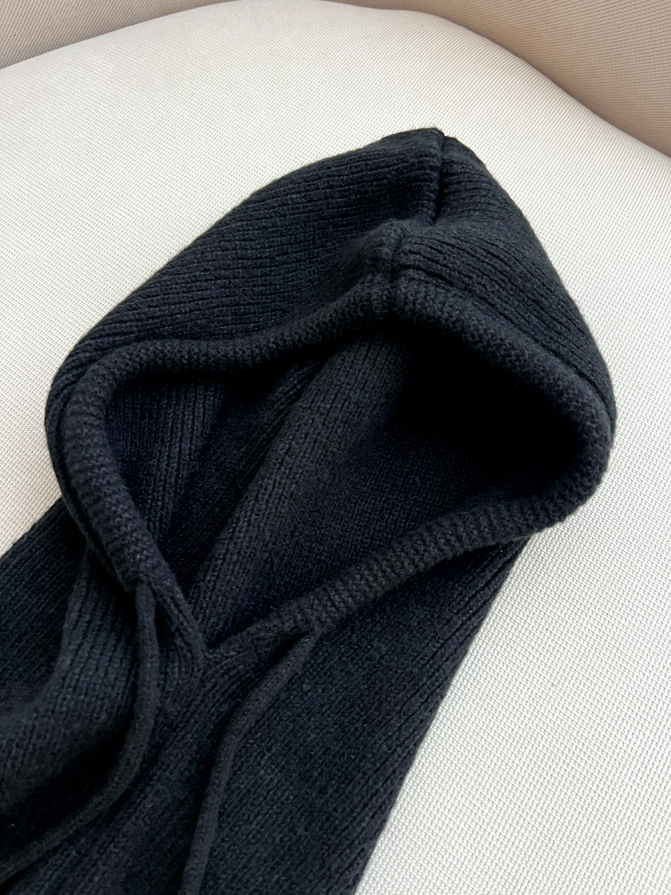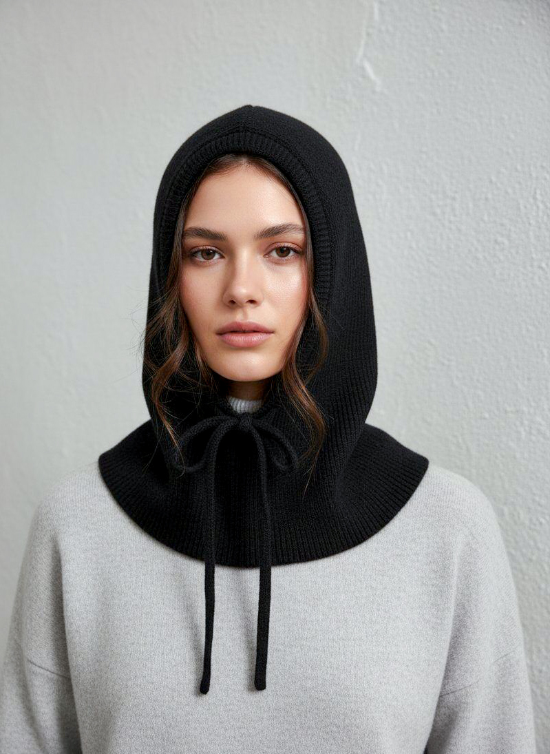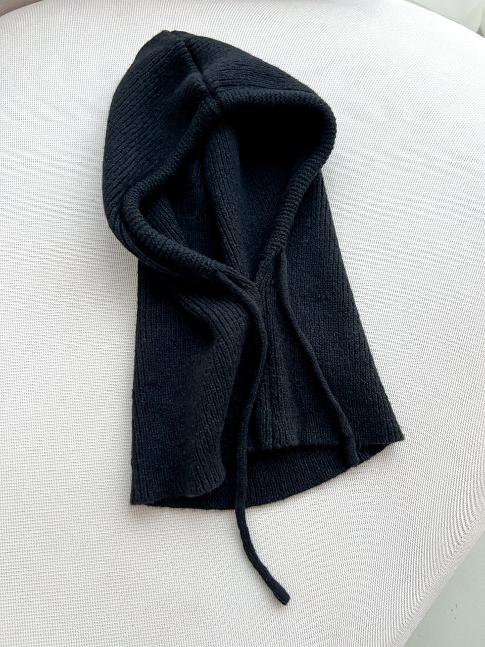 Pletená kapucňa so šnúrkou. Ideálny kúsok ku kabátu, alebo bunde, ktoré nemajú kapucňu.