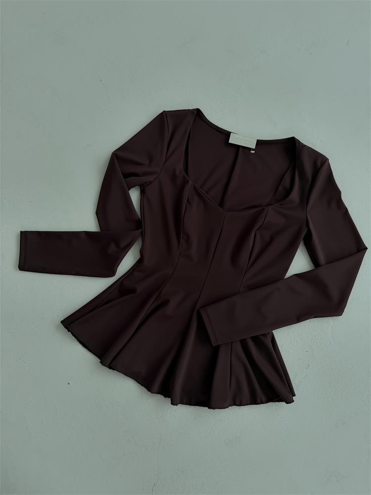 Elegantný a moderný top s dlhým rukávom, ktorý kombinuje pohodlie s originálnym dizajnom. Asymetrický výstrih dodáva kúsku jedinečný šmrnc a jemne zvýrazní dekolt, čím vytvára štýlový a sofistikovaný vzhľad. Vyrobený z kvalitného, príjemného materiálu, ktorý zaručuje pohodlné nosenie počas celého dňa. Ideálny na každodenné nosenie aj na špeciálne príležitosti, skvelo sa kombinuje s nohavicami, sukňami alebo elegantnými doplnkami.
