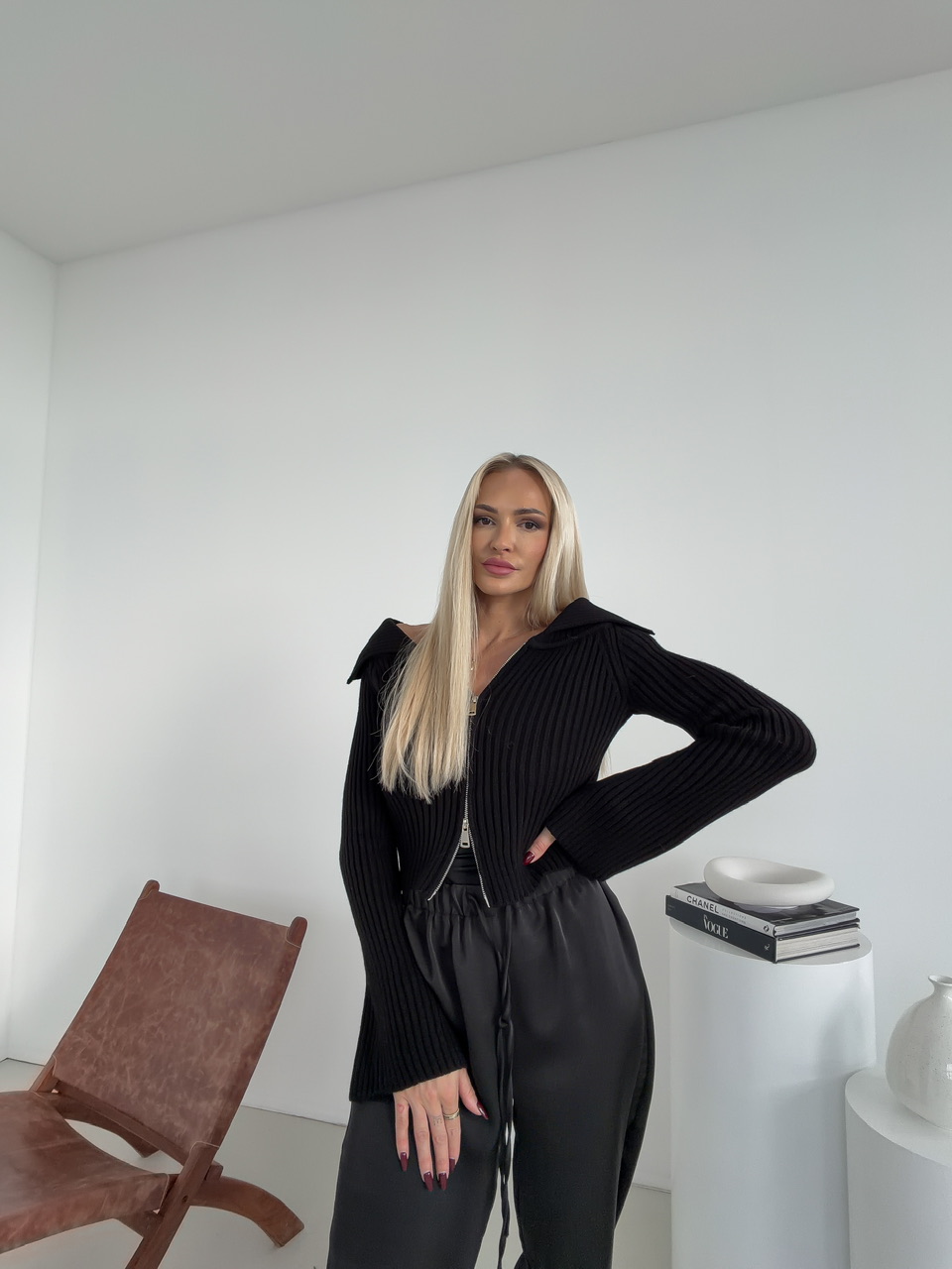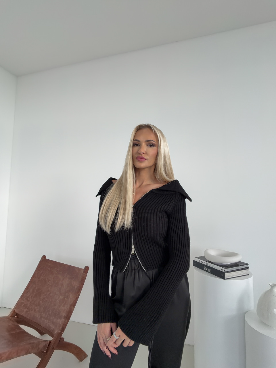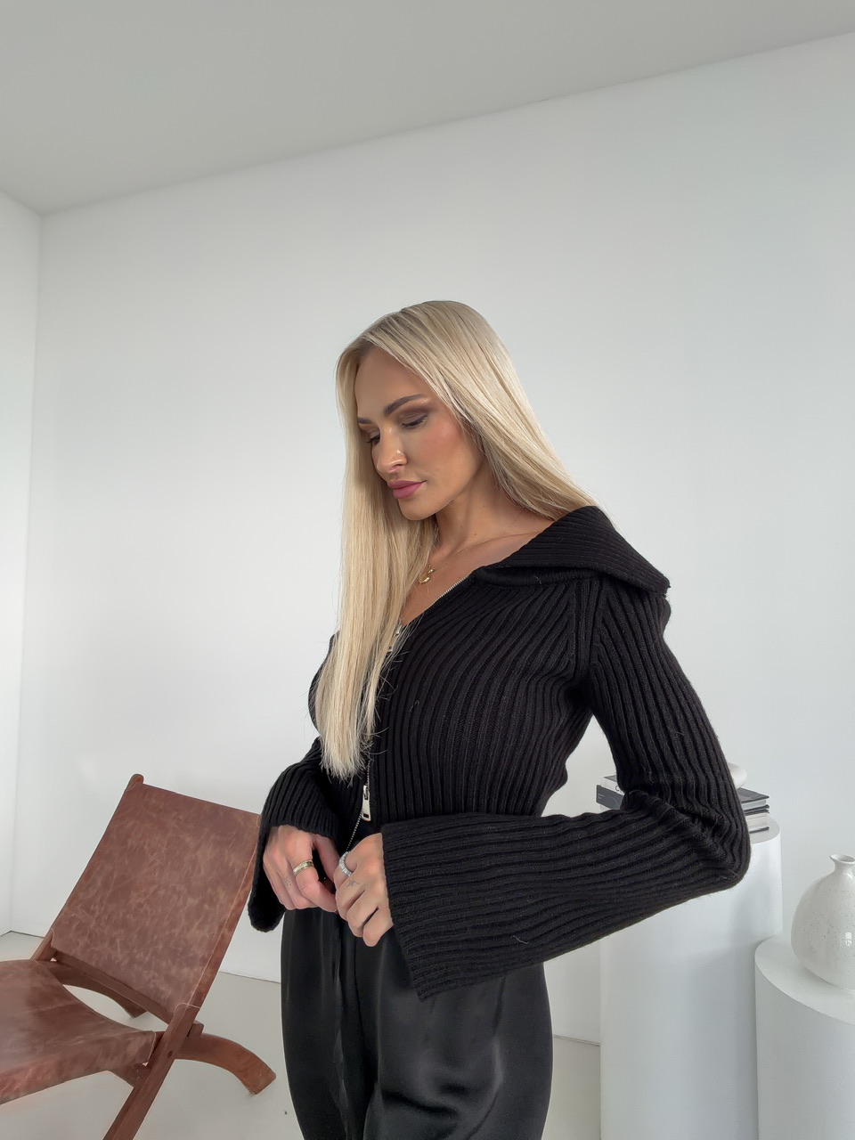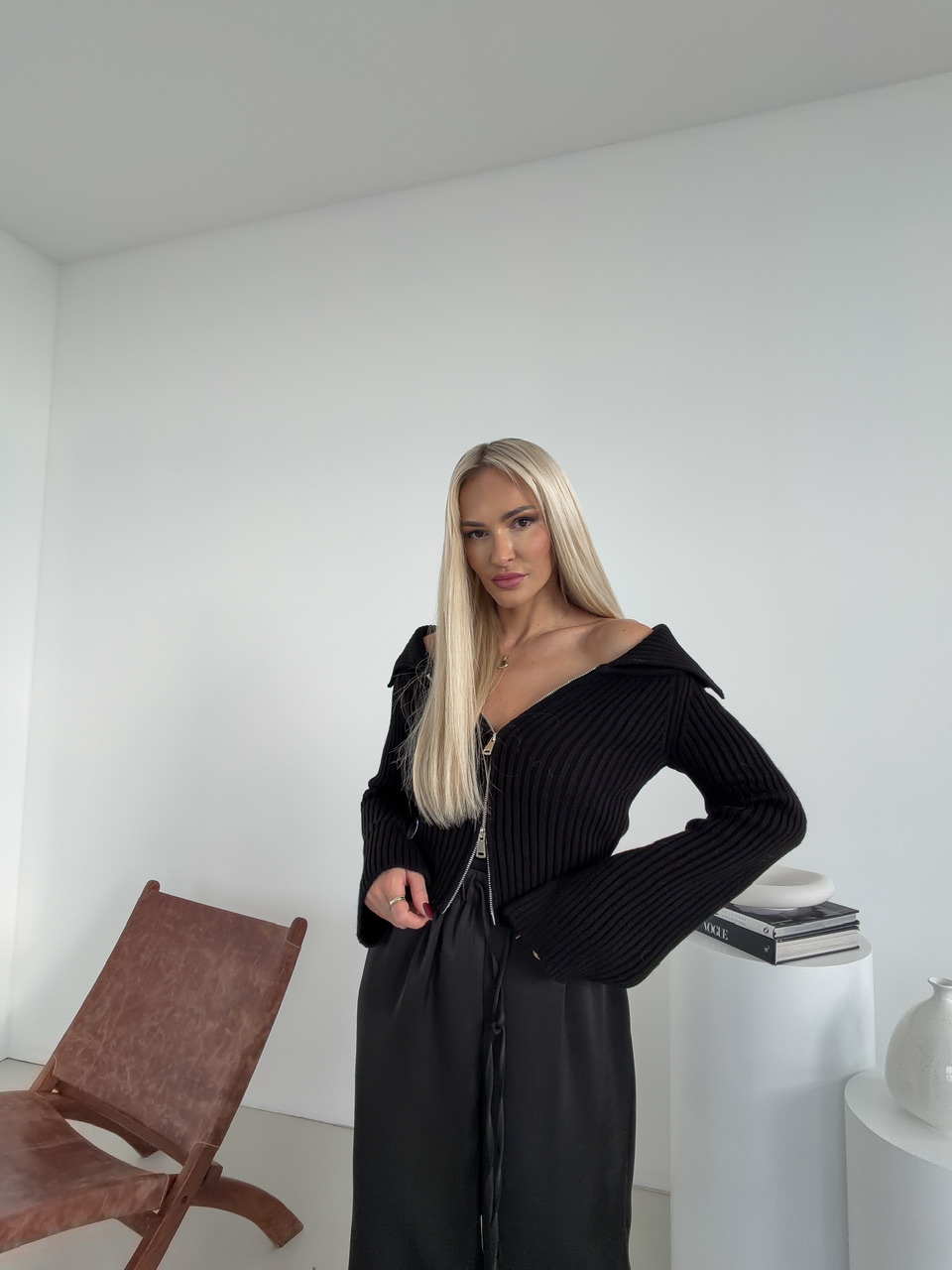 Štýlový a pohodlný dámsky sveter, ktorý zaujme moderným dizajnom a prepracovanými detailmi. Predná časť je doplnená o praktické zapínanie na zips, vďaka ktorému si môžeš ľahko prispôsobiť mieru otvorenia. Sveter má rozšírené rukávy, ktoré dodávajú celému kúsku jemne boho nádych a pôsobia ženskejšie a originálne. Vyrobený je z príjemného, elastického materiálu, ktorý sa krásne prispôsobí postave a poskytuje maximálne pohodlie pri nosení.