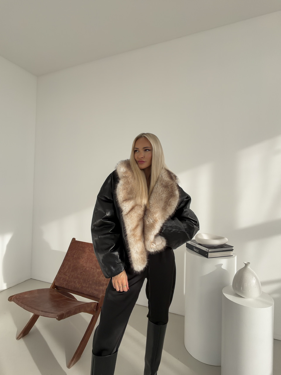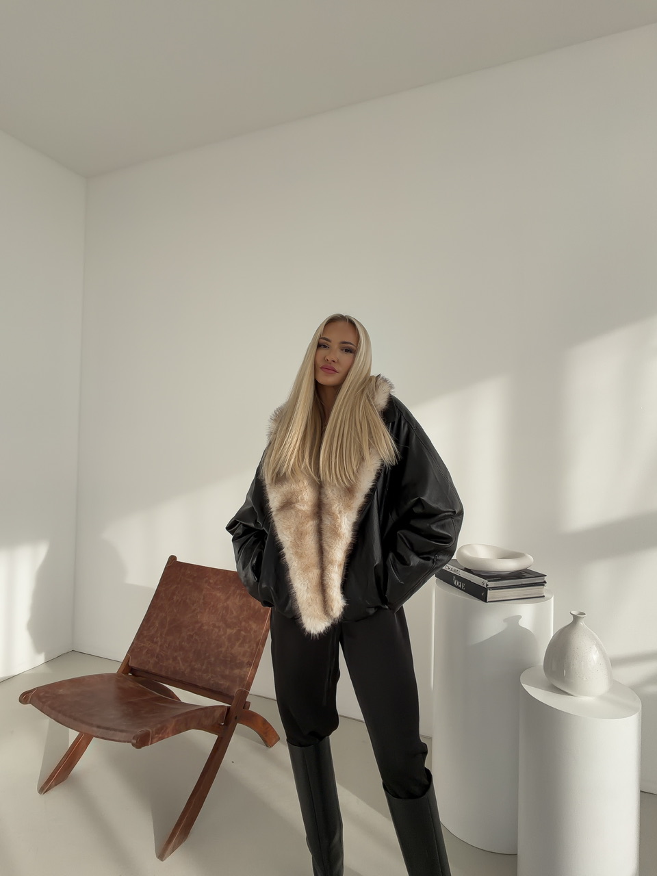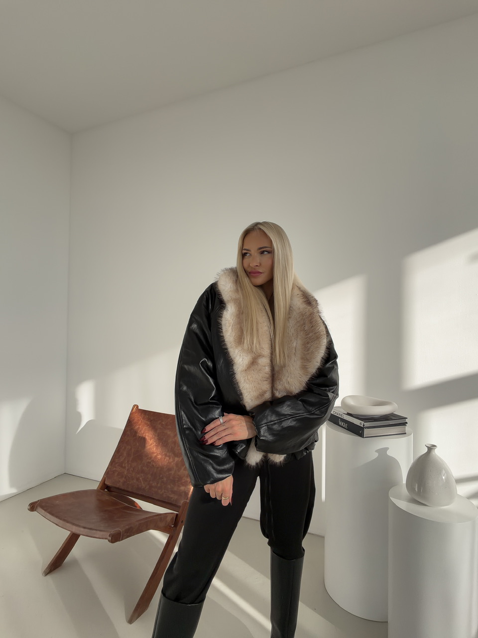 Zostaňte štýloví a zároveň v teple počas chladných dní s našou zimnou bundou z kvalitnej koženky. Bunda je vybavená falošnou odnímateľnou kožušinou, ktorá dodáva luxusný vzhľad a zároveň praktickosť – podľa potreby ju môžete odopnúť. Zapínanie na cvoky zabezpečuje jednoduché a bezpečné uchytenie.Dve praktické bočné vrecká poskytujú miesto na drobnosti alebo ruky, zatiaľ čo elastický prvok na spodku bundy pomáha udržať teplo a dodáva bundě moderný strih. Ideálna voľba pre každodenné nosenie, ktorá spája štýl, komfort a funkčnosť.