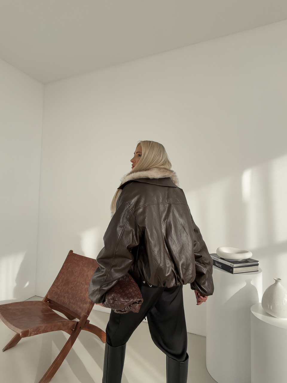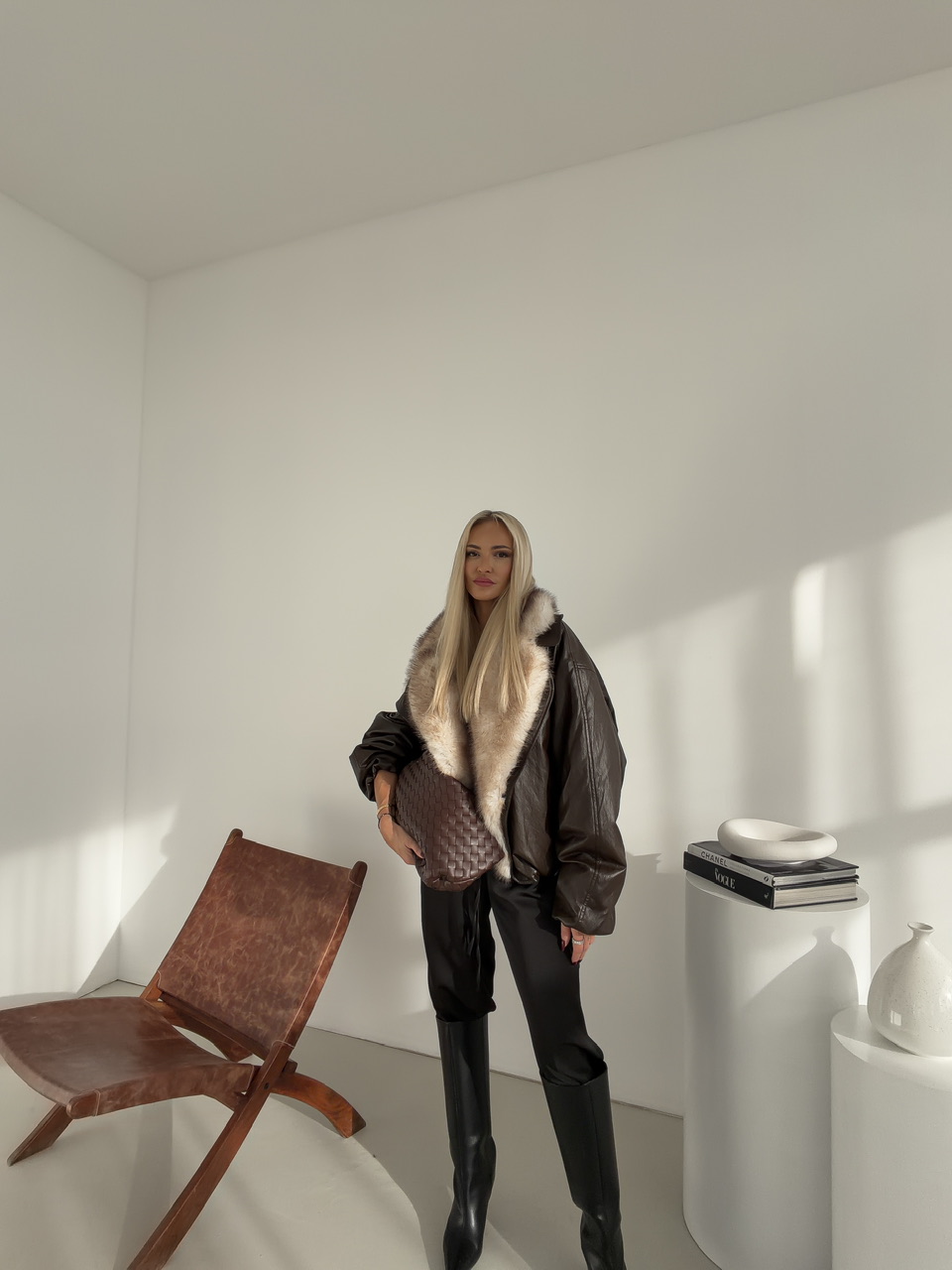 Zostaňte štýloví a zároveň v teple počas chladných dní s našou zimnou bundou z kvalitnej koženky. Bunda je vybavená falošnou odnímateľnou kožušinou, ktorá dodáva luxusný vzhľad a zároveň praktickosť – podľa potreby ju môžete odopnúť. Zapínanie na cvoky zabezpečuje jednoduché a bezpečné uchytenie.Dve praktické bočné vrecká poskytujú miesto na drobnosti alebo ruky, zatiaľ čo elastický prvok na spodku bundy pomáha udržať teplo a dodáva bundě moderný strih. Ideálna voľba pre každodenné nosenie, ktorá spája štýl, komfort a funkčnosť.