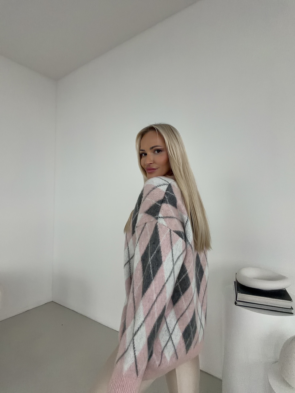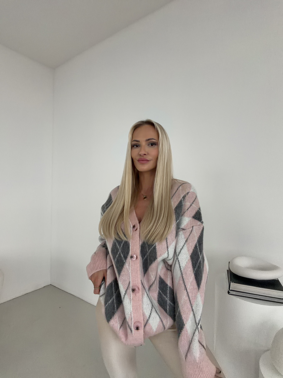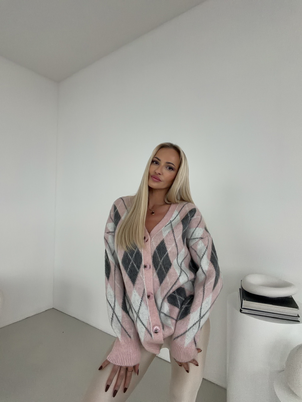 Tento nadčasový sveter je must-have kúskom do šatníka každej ženy. Mäkký pletený materiál s výrazným kosoštvorcovým vzorom pôsobí hrejivo a štýlovo zároveň. Je pohodlný, príjemný na dotyk a vďaka voľnejšiemu strihu sa skvele hodí na každodenné nosenie. Zapínanie má na gombíky. Krásne vynikne s rifľami, sukňou aj cez jednoduché šaty. Skvelý kúsok na vrstvenie do chladnejších dní.