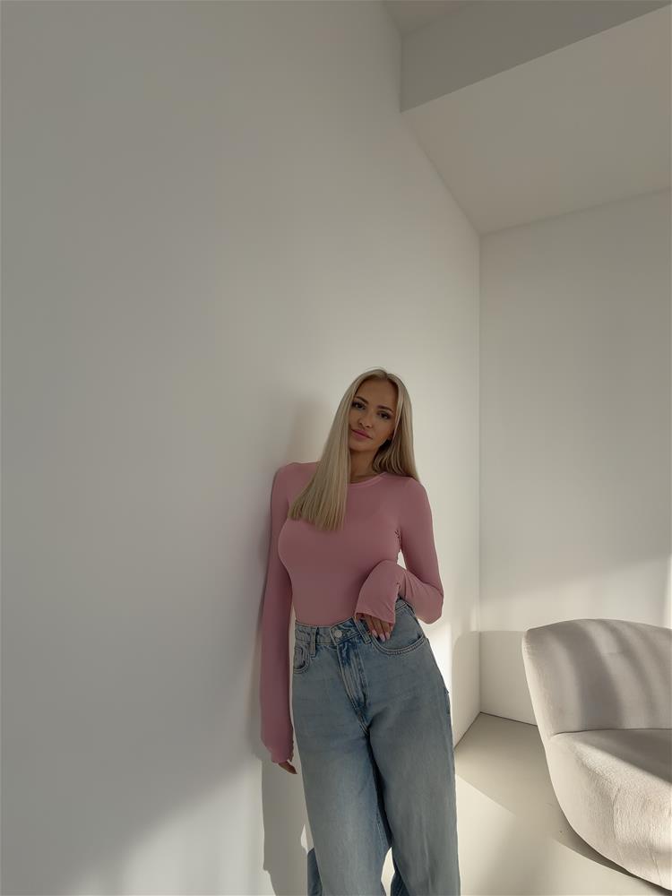 Pohodlné a praktické body s dlhým rukávom a okrúhlym výstrihom. Body je vyrobené z jemného materiálu, ktorý zaisťuje pohodlie počas celého dňa. Zapínanie na cvoky. Elegantný a univerzálny dizajn sa ľahko kombinuje s ostatným oblečením.