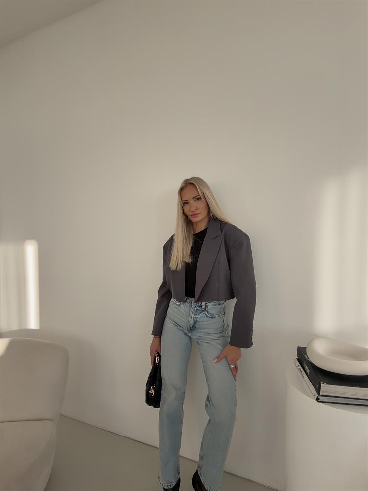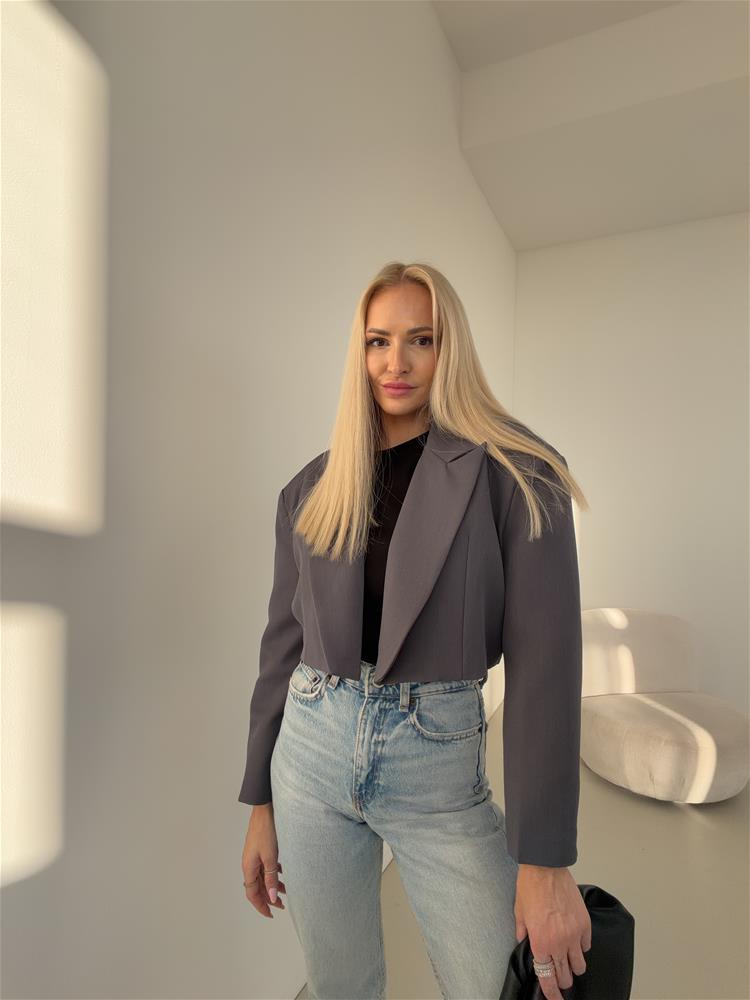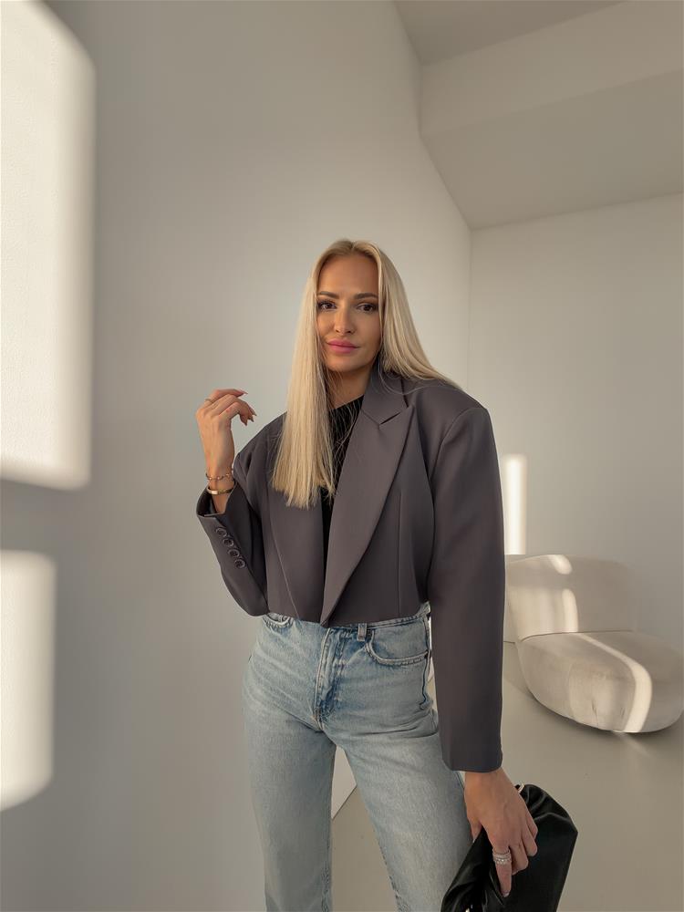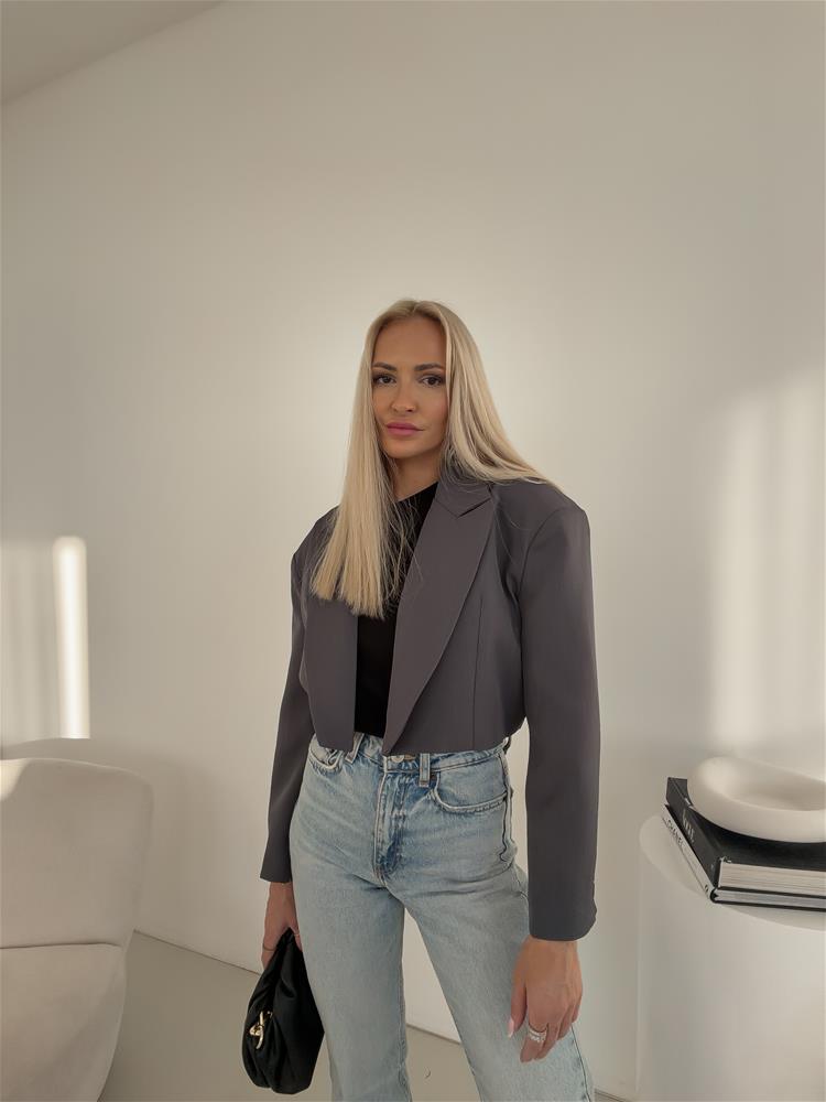 Doprajte svojmu outfitu nádych elegancie s týmto štýlovým krátkym sakom. Sako je navrhnuté bez zapínania, čo umožňuje jednoduché a pohodlné nosenie, pričom vytvára moderný a nadčasový siluetový efekt. Vypchávky na pleciach dodávajú štruktúru a jemnú dramatickosť, čím podčiarkujú ženskú siluetu a elegantný štýl.Podšívka z kvalitného materiálu zabezpečuje komfort počas celého dňa a zároveň zaručuje, že sako krásne padne a ľahko sa kombinuje s rôznymi outfitmi – od formálnych po casual looky.