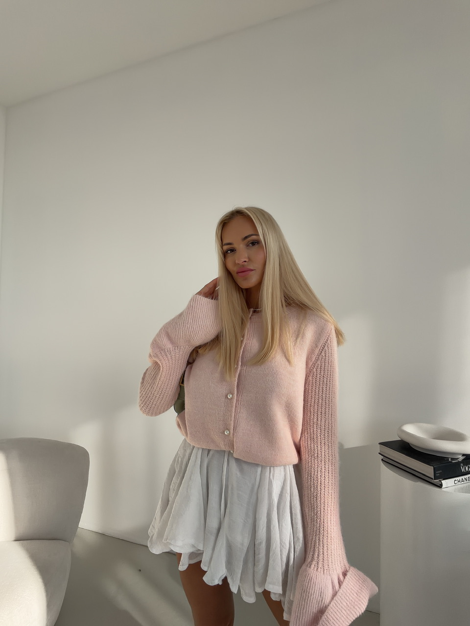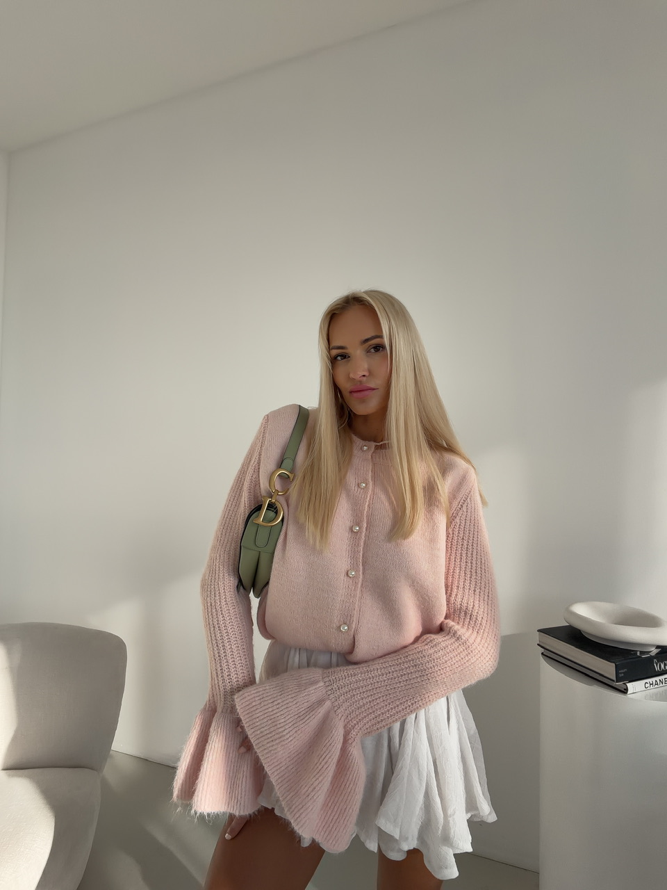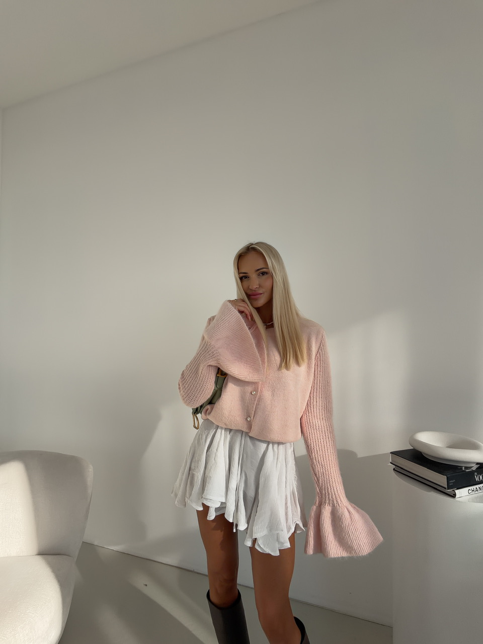 Elegantný sveter so zapínaním na perličky.  Jemný, nadčasový a maximálne ženský – tento sveter je kúsok, ktorý by nemal chýbať v žiadnom šatníku. Vyrobený z mäkkého, hrejivého úpletu, poskytuje pohodlie počas celého dňa. Najväčšou ozdobou sú perličkové gombíky, ktoré dodávajú svetru elegantný a romantický nádych. Perfektný do práce, na stretnutie s priateľmi aj večerné posedenie.