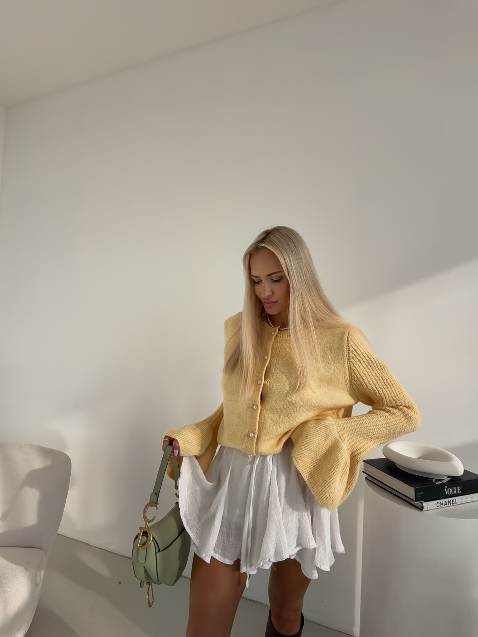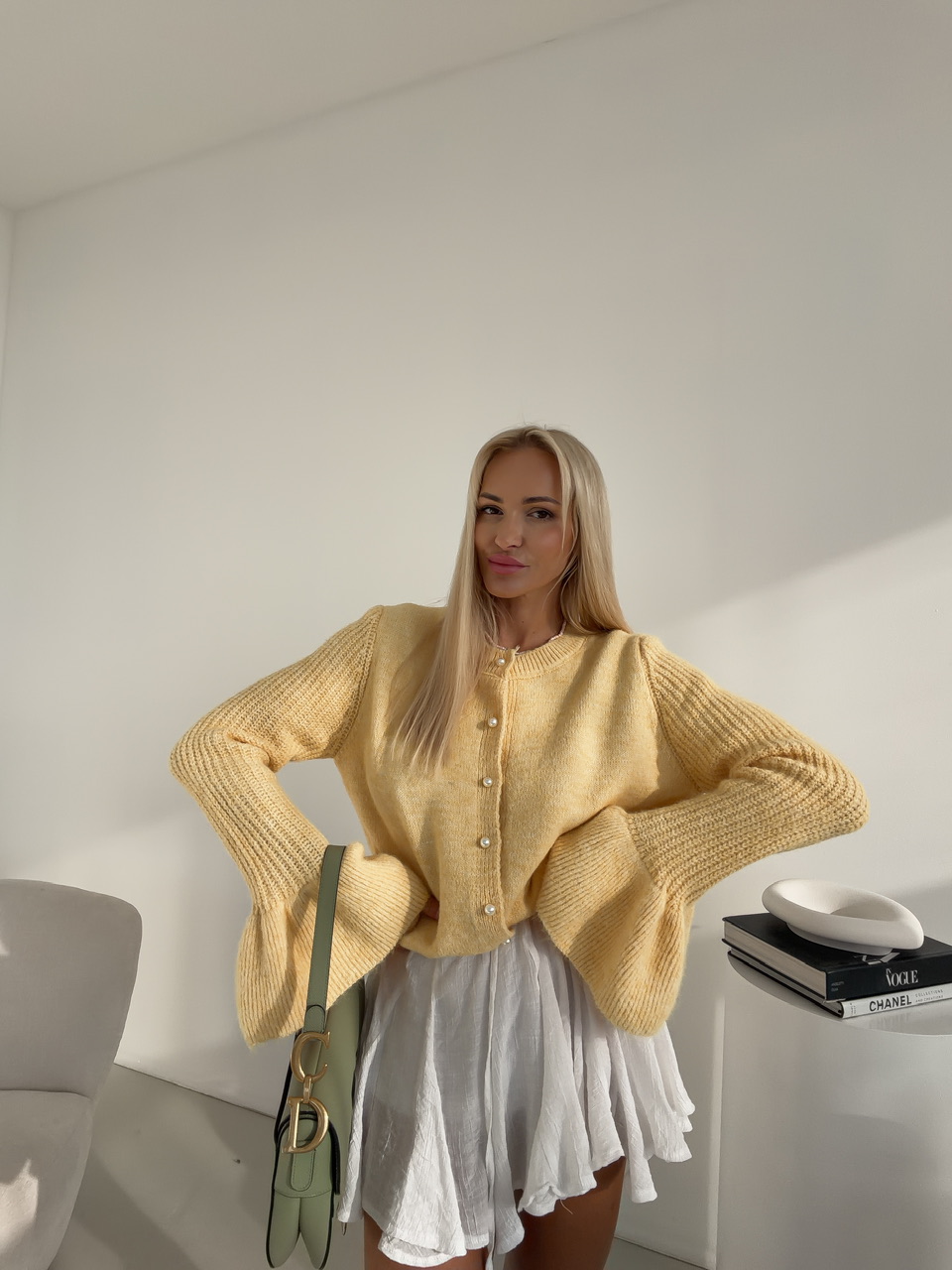 Elegantný sveter so zapínaním na perličky.  Jemný, nadčasový a maximálne ženský – tento sveter je kúsok, ktorý by nemal chýbať v žiadnom šatníku. Vyrobený z mäkkého, hrejivého úpletu, poskytuje pohodlie počas celého dňa. Najväčšou ozdobou sú perličkové gombíky, ktoré dodávajú svetru elegantný a romantický nádych. Perfektný do práce, na stretnutie s priateľmi aj večerné posedenie.
