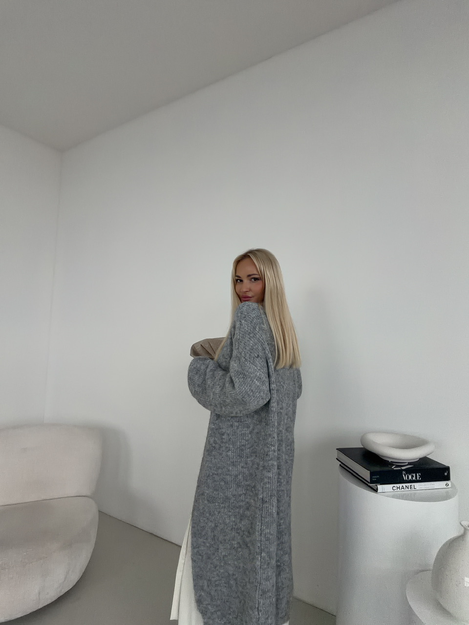 Dlhý kardigán je nadčasový kúsok, ktorý dodá každému outfitu eleganciu aj pohodlie. Je vyrobený z príjemného, mäkkého materiálu, ktorý sa pohodlne nosí počas celého dňa. Voľný strih krásne splýva s postavou a umožňuje jednoduché vrstvenie – či už cez tričko, blúzku alebo šaty. Kardigán má predĺženú dĺžku, ktorá opticky zoštíhľuje siluetu a poskytuje extra komfort v chladnejších dňoch. Skvelo sa kombinuje s džínsami aj elegantnejšími kúskami, vďaka čomu je ideálny do práce, na prechádzky aj na bežné nosenie.