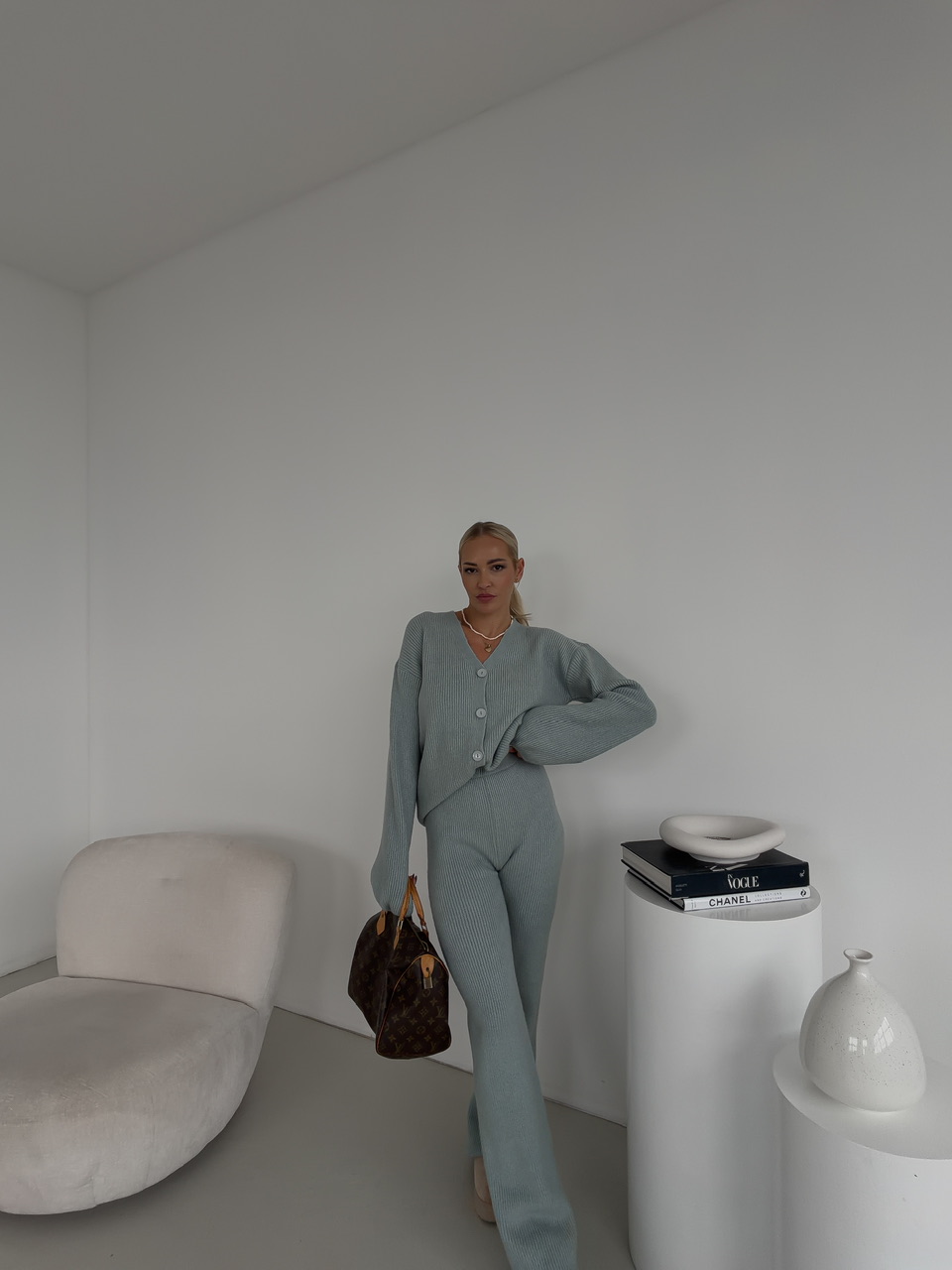 Pohodlné pletené nohavice s elastickým pásom na gumu spájajú štýl a komfort v jednom kúsku. Mäkký a pružný materiál zabezpečuje voľnosť pohybu a príjemný pocit pri nosení po celý deň. Nadčasový strih a univerzálny dizajn umožňujú jednoduché kombinovanie s rôznymi topmi, čím sa tieto nohavice stávajú ideálnou voľbou na každodenné nosenie aj relax.