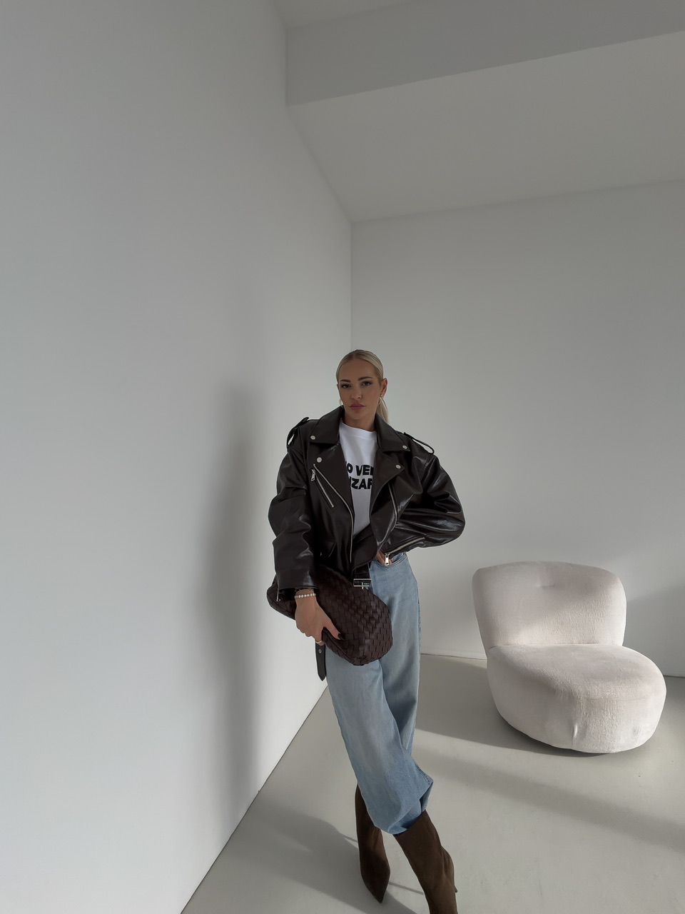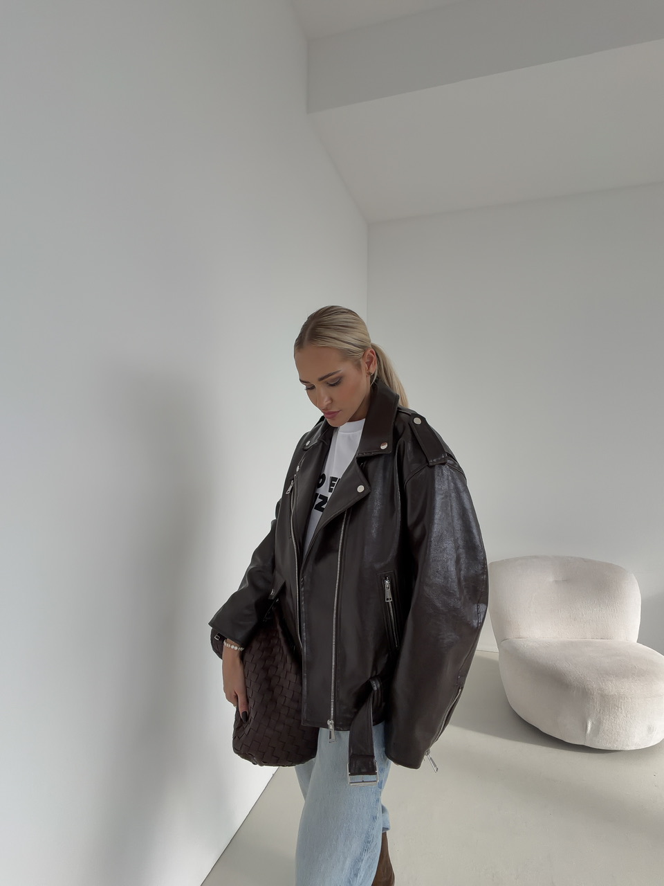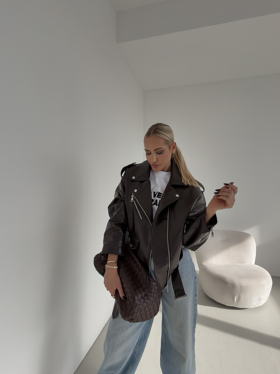 Štýlová koženková bunda s opaskom kombinuje výrazný dizajn s praktickými detailmi. Je vybavená bočnými vreckami aj náprsným vreckom, ktoré zvyšujú funkčnosť a dodávajú outfitu šmrnc. Podšívka zabezpečuje pohodlie pri nosení, zatiaľ čo zapínanie na zips a opasok podčiarkujú moderný a nadčasový vzhľad. Ideálna na vrstvenie a vytváranie výrazných, mestských outfitov.