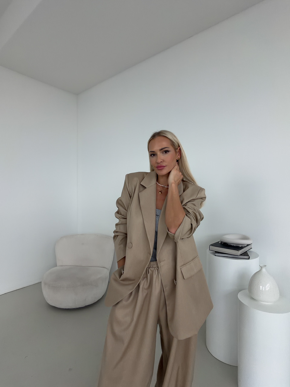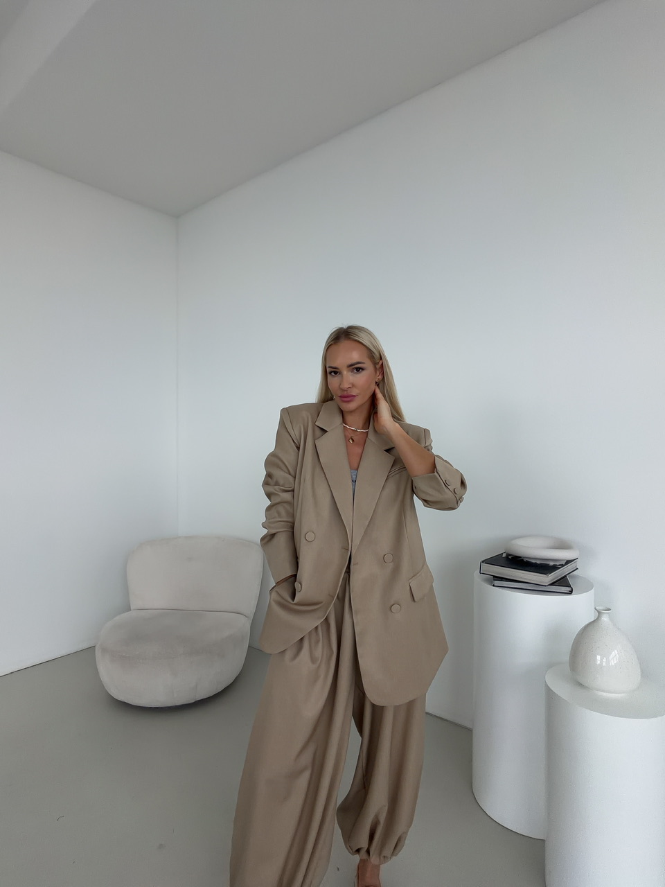 Štýlové dámske sako s dvojradovým zapínaním na gombíky prináša nadčasový a elegantný vzhľad vhodný do práce aj na spoločenské príležitosti. Vypchávky na pleciach jemne zvýrazňujú siluetu a dodávajú outfitu štruktúrovaný, sofistikovaný charakter. Sako je doplnené o falošné náprsné vrecko, ktoré podčiarkuje klasický dizajn, a dve praktické predné vrecká, ktoré kombinujú funkčnosť s moderným štýlom.