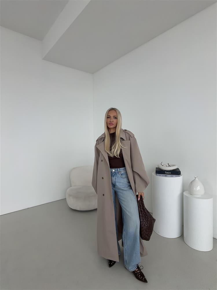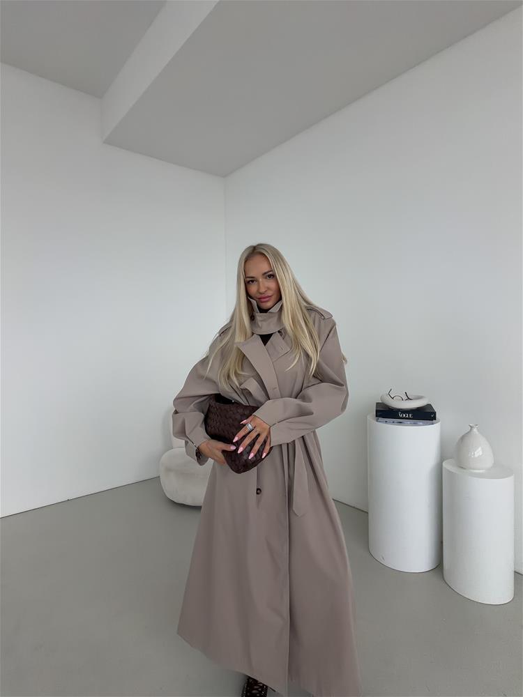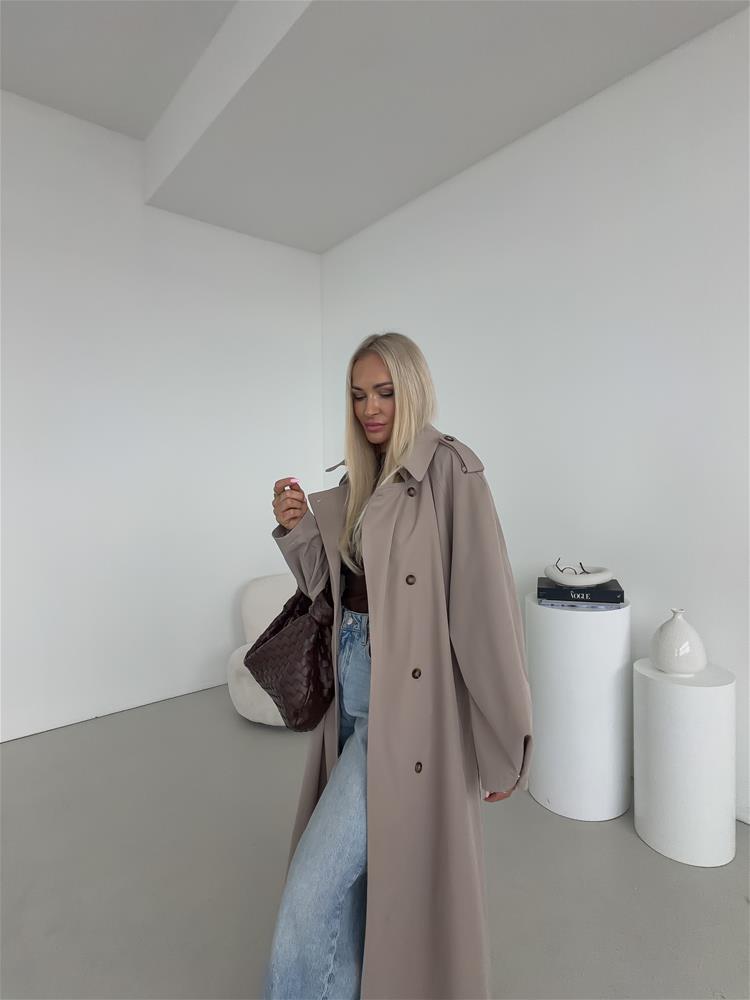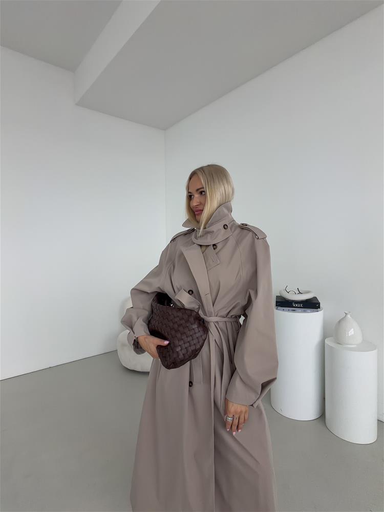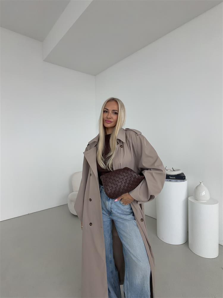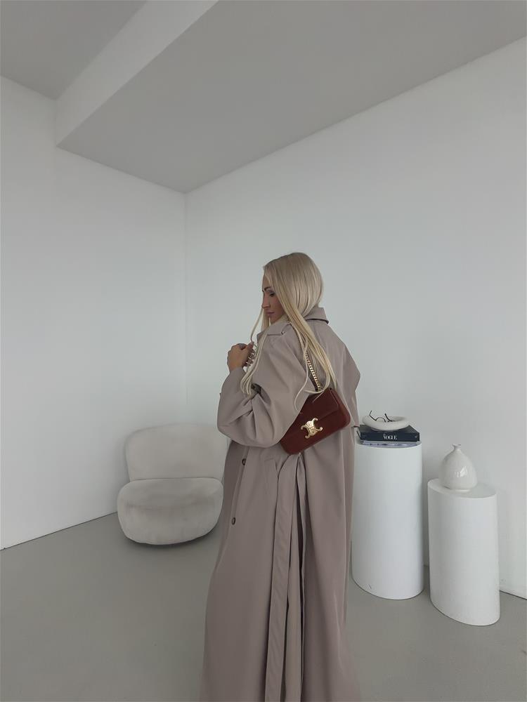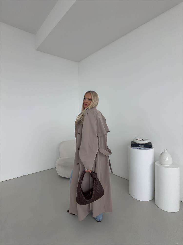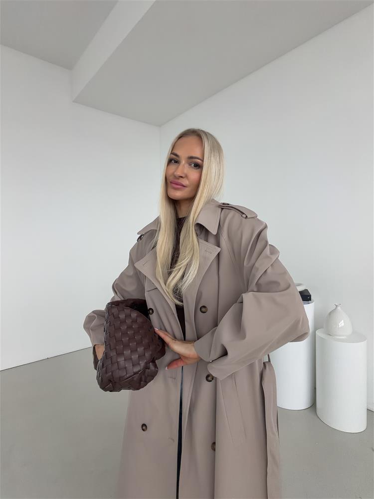 Elegantný a nadčasový trenčkot s dvojradovým zapínaním je ideálnou voľbou pre ženy, ktoré hľadajú spojenie štýlu a praktickosti. Klasický strih zvýrazňuje siluetu, zatiaľ čo viazanie okolo pása umožňuje prispôsobiť kabát postave a vytvoriť ženský, sofistikovaný vzhľad. Bočné vrecká poskytujú dostatok priestoru na drobnosti a zároveň podčiarkujú funkčný charakter kabáta. Dvojradové zapínanie dodáva modelu ikonický, nadčasový dizajn, ktorý nikdy nevyjde z módy. Precízne spracovanie detailov, kvalitný materiál a starostlivo vypracovaný golier zaručujú pohodlie aj počas chladnejších dní.