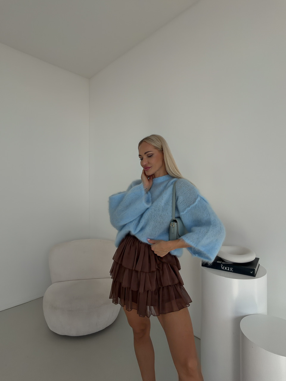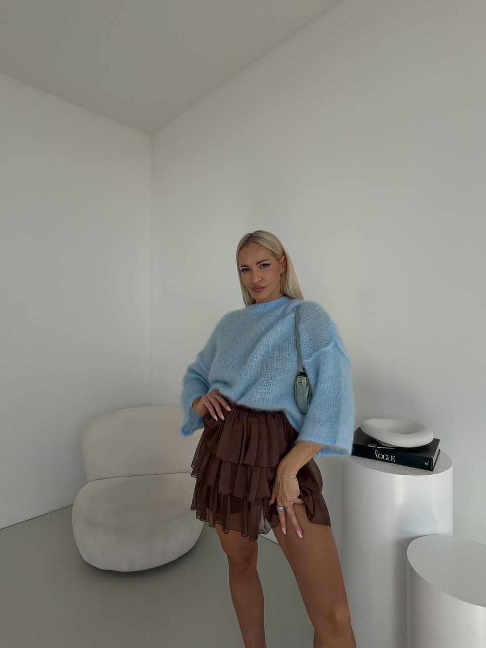 Mini sukňa s pásom na gumu a volánovým nazberaným efektom je ideálnym kúskom pre ženy, ktoré milujú pohodlie a zároveň chcú pôsobiť štýlovo a žensky. Ľahký, vzdušný materiál krásne splýva s pohybom a vytvára jemný, hravý efekt pri chôdzi. Nazberaný volán dodáva sukni objem a romantický nádych, zatiaľ čo elastický pás sa dokonale prispôsobí postave a zabezpečí maximálny komfort počas celého dňa.