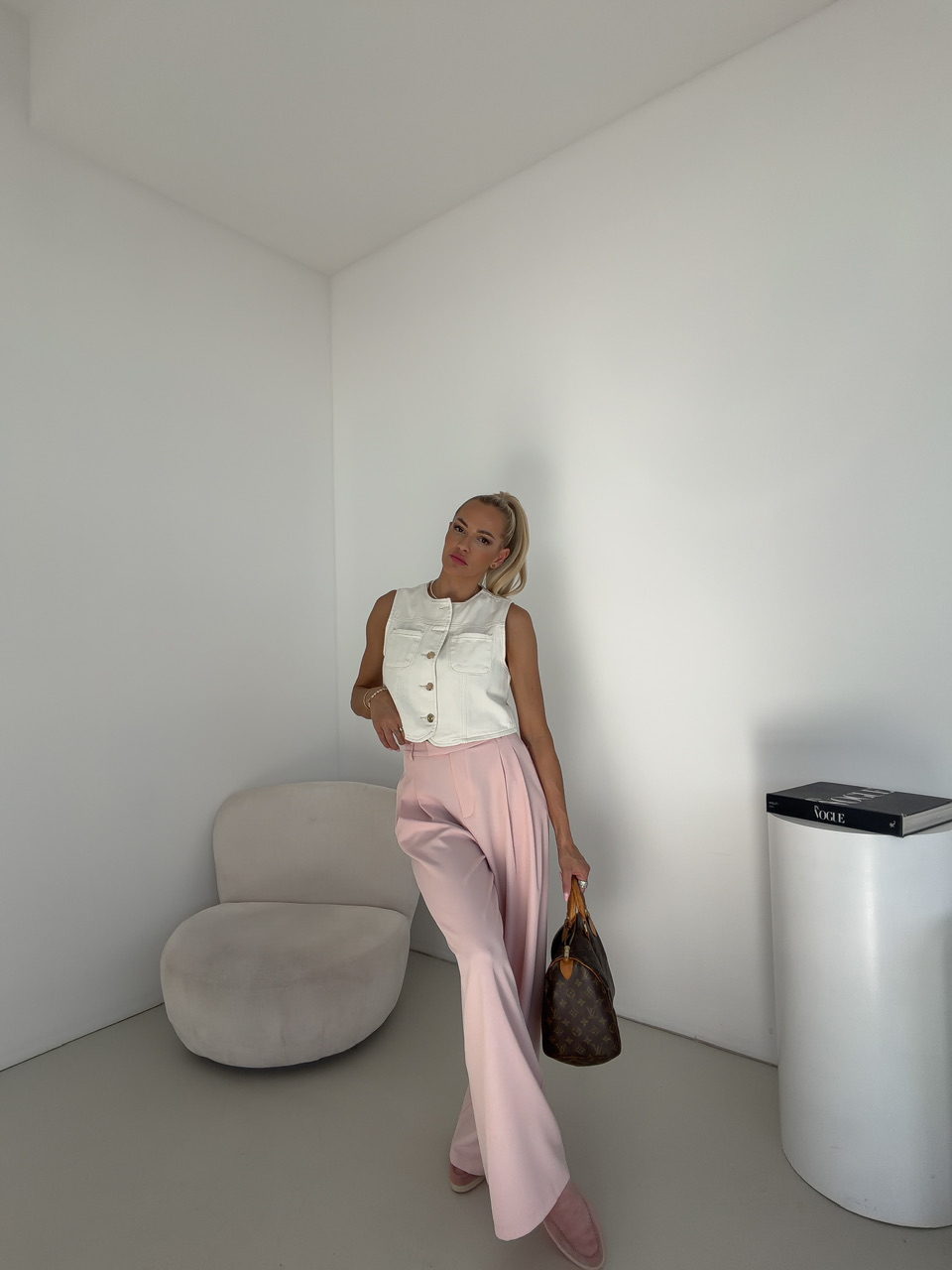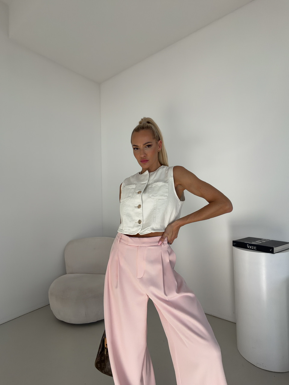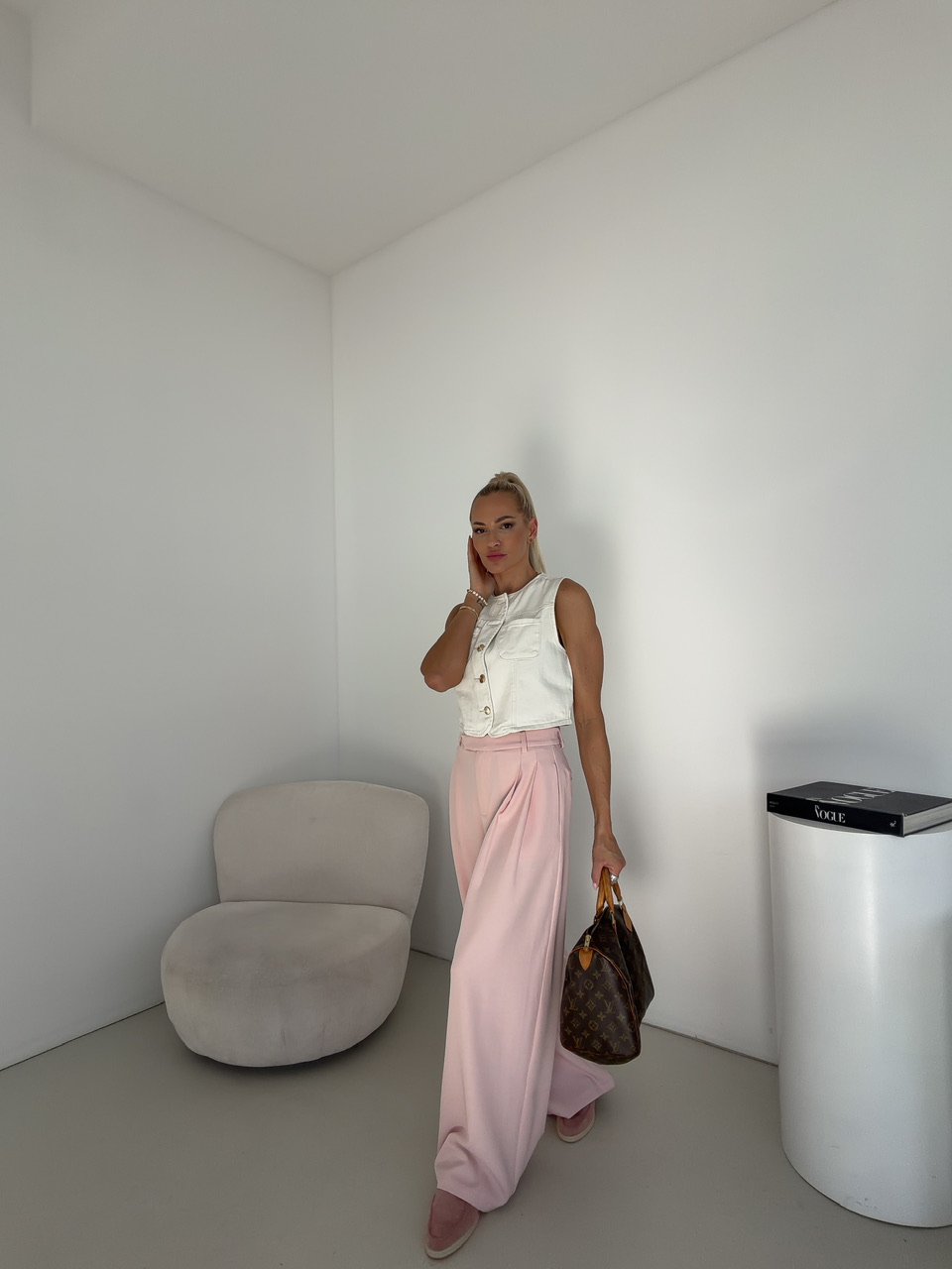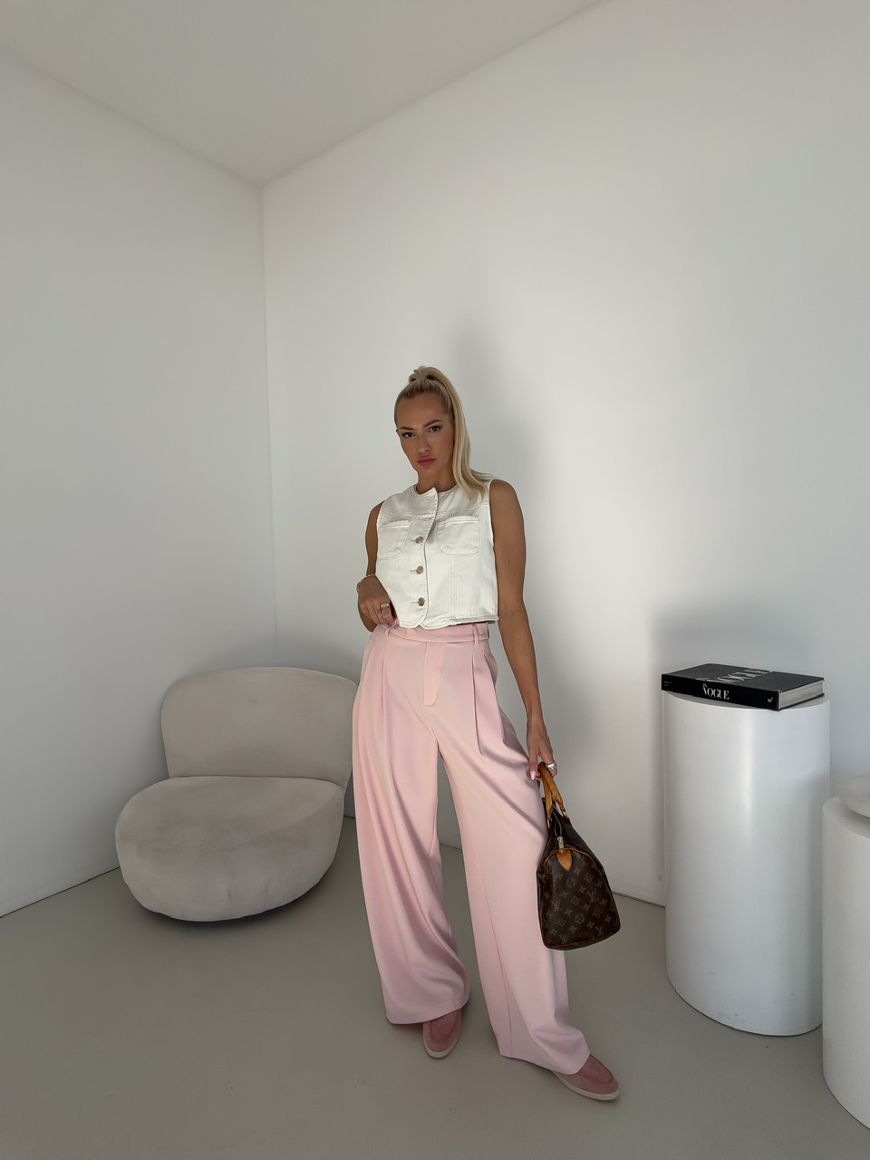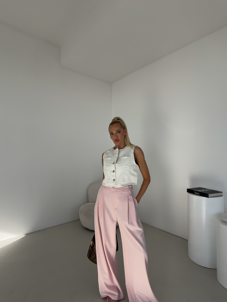 Elegantné nohavice, ktoré spájajú nadčasový štýl s pohodlným voľným strihom. Ideálne na pracovné stretnutia, spoločenské udalosti alebo štýlové každodenné outfity. Nohavice majú praktické pútka na opasok, vďaka ktorým si môžete outfit doladiť obľúbeným opaskom a zvýrazniť pás. Zapínanie na zips a patent zabezpečuje pohodlné obliekanie a dokonalé držanie nohavíc na mieste. Voľný strih dodáva nohaviciam sofistikovaný a moderný vzhľad, pričom poskytuje maximálnu voľnosť pohybu.