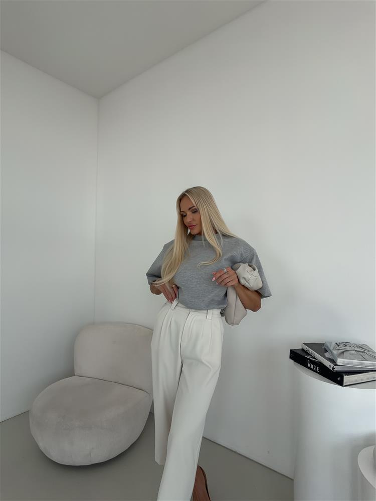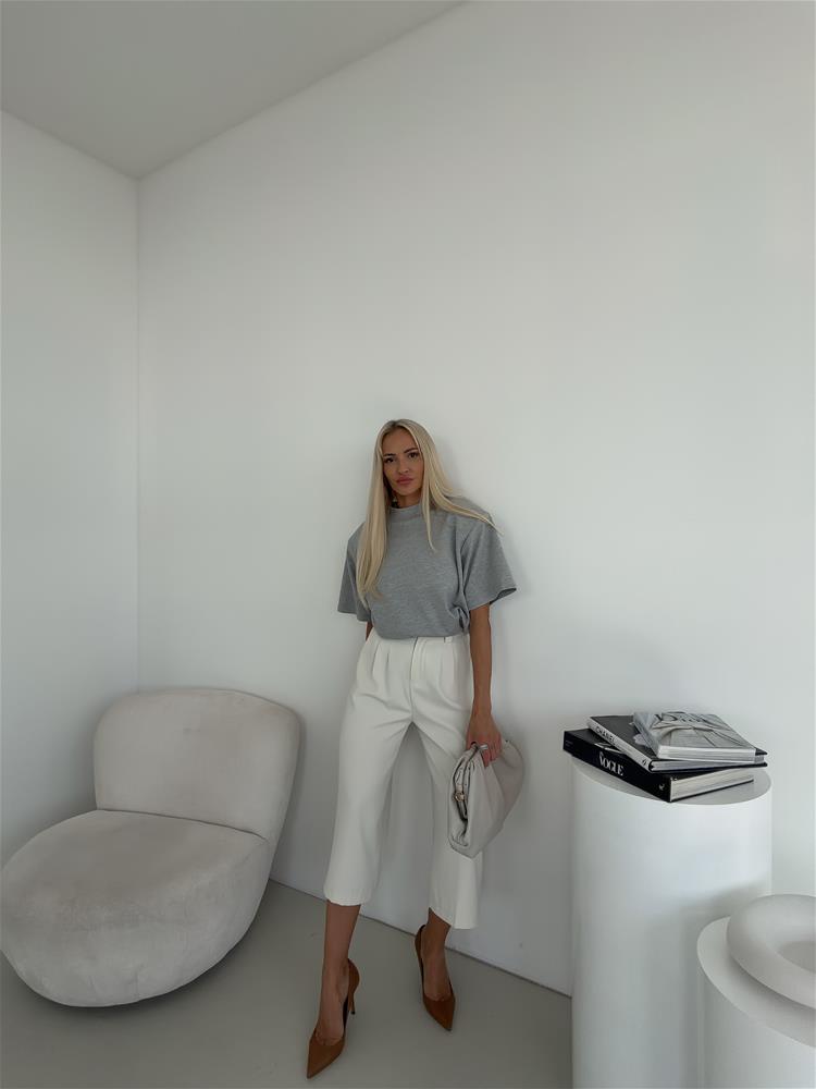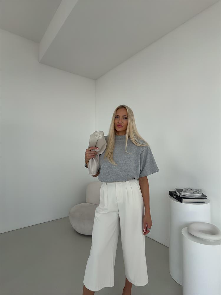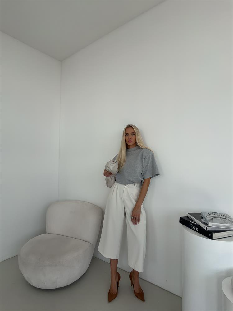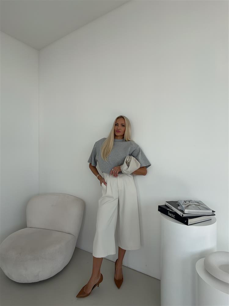 Štýlové culotte nohavice v nadčasovej krémovej farbe sú dokonalým spojením elegancie a pohodlia. Skrátený, voľnejší strih vytvára modernú siluetu a zároveň poskytuje maximálny komfort pri nosení.
