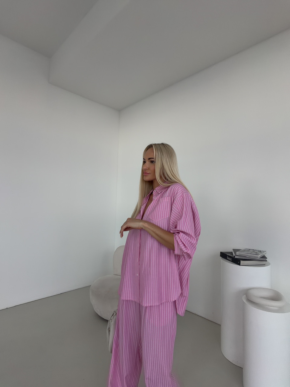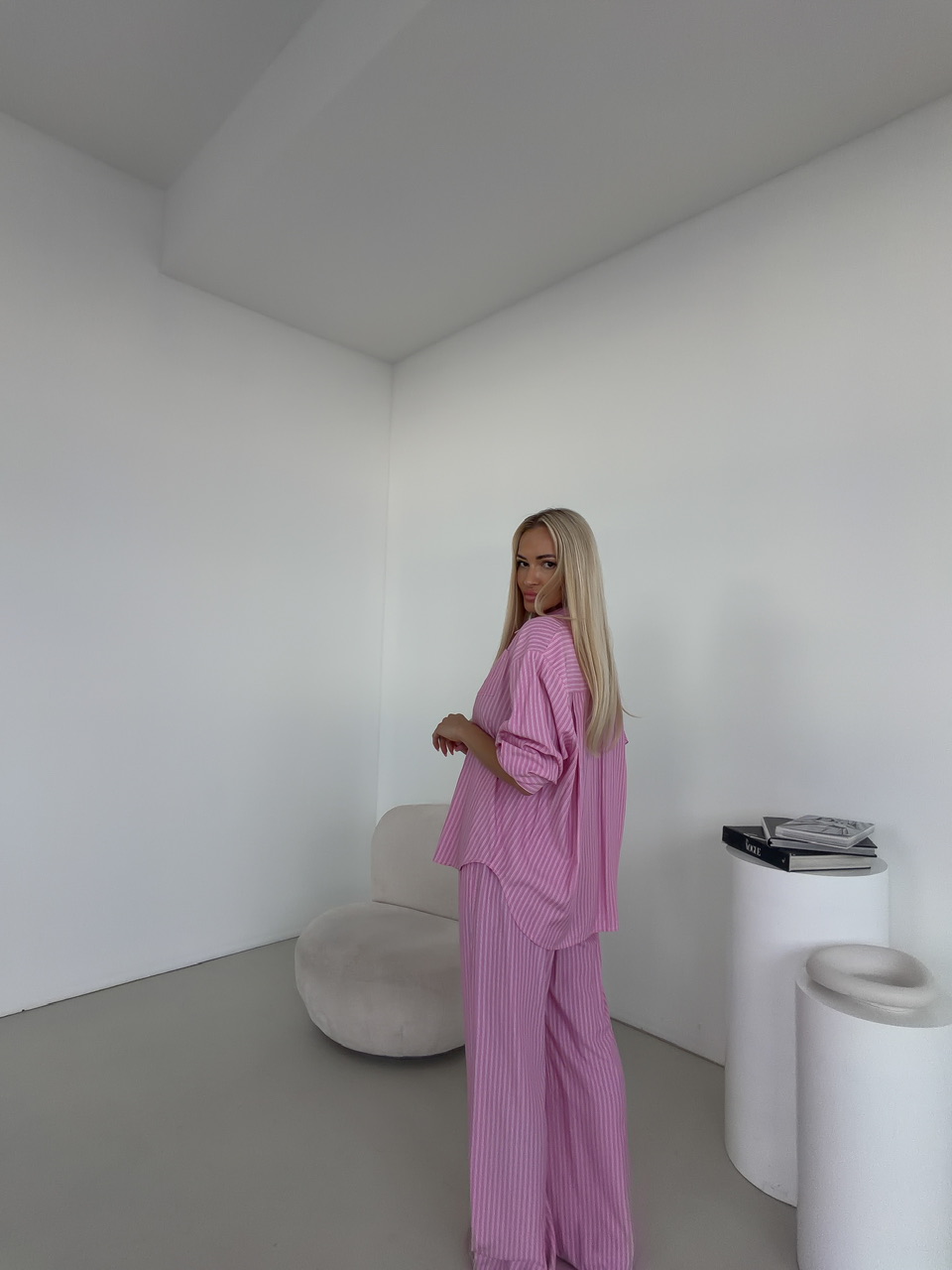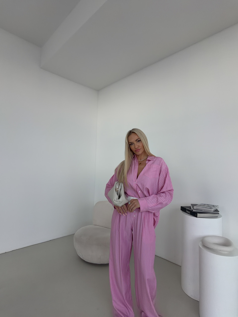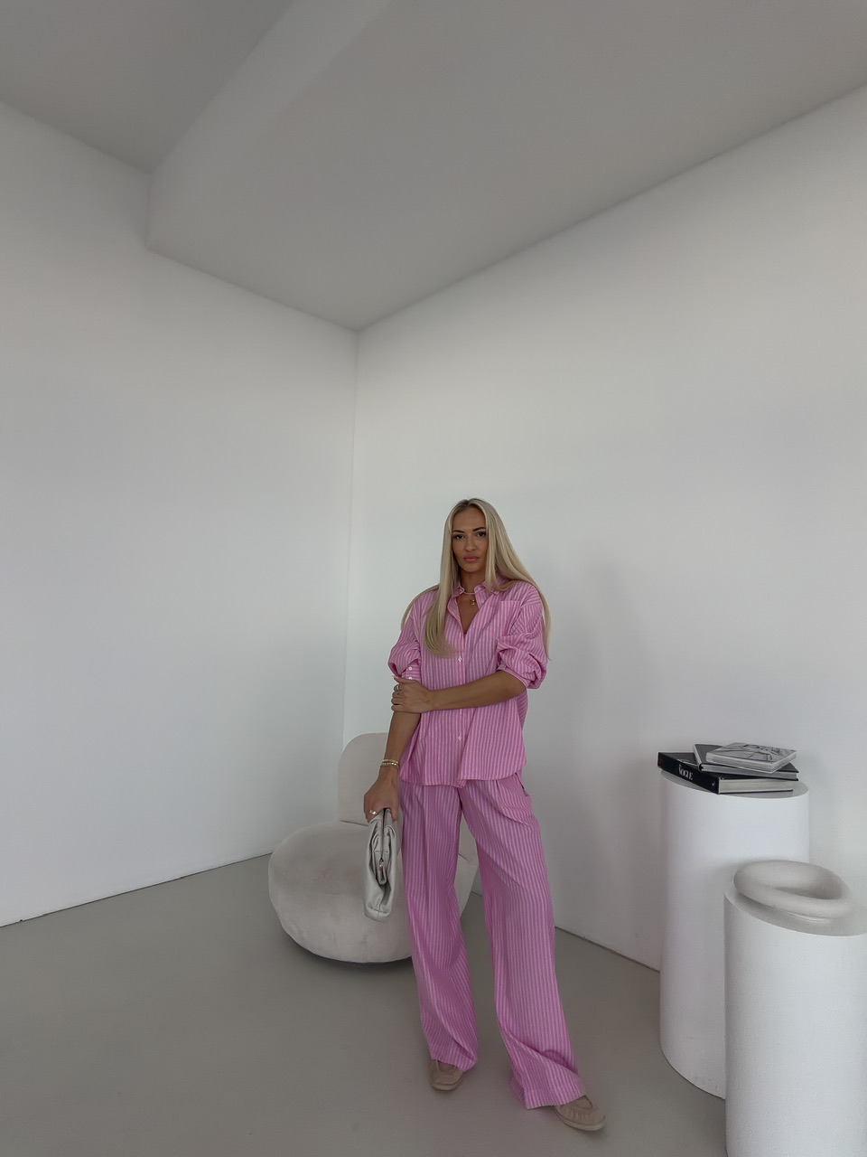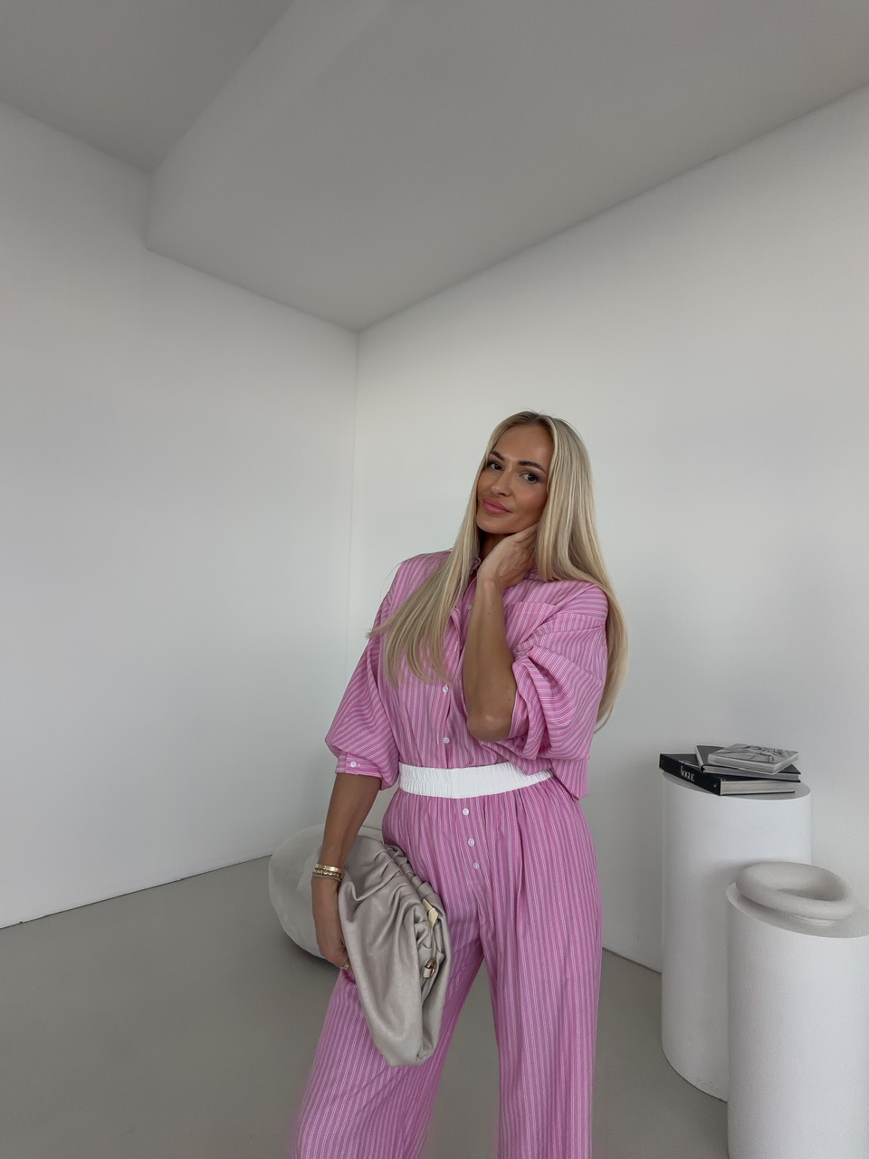 Pruhované nohavice s elastickým pásom spájajú pohodlie a moderný štýl v jednom kúsku. Vďaka pásu na gumu sa perfektne prispôsobia postave a zabezpečia komfort pri celodennom nosení. Nadčasový pruhovaný vzor opticky predlžuje siluetu a dodáva nohaviciam elegantný, no zároveň ležérny vzhľad. Praktické bočné vrecká zvyšujú ich funkčnosť, zatiaľ čo ozdobné falošné gombíky pridávajú štýlový detail, ktorý oživí celý outfit.