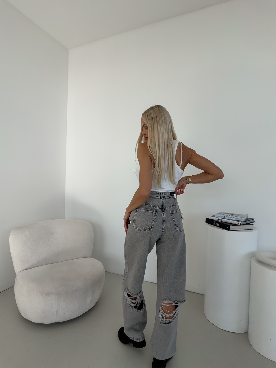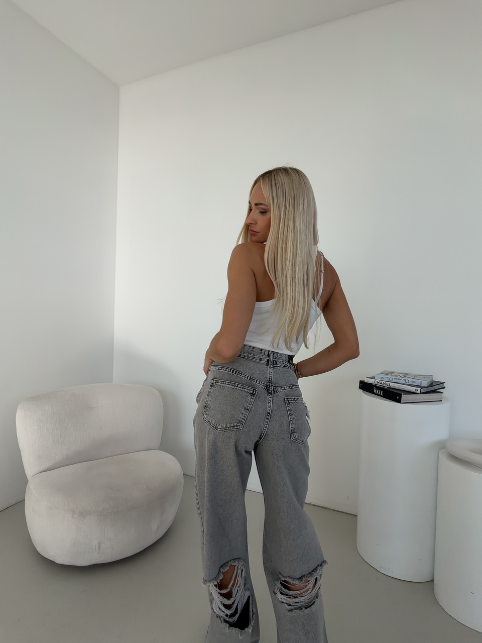 Štýlové džínsy so zapínaním na zips a gombík sú ideálnou voľbou pre moderný, ležérny outfit. Klasický strih dopĺňajú praktické predné a zadné vrecká, ktoré zvyšujú ich funkčnosť. Zadná časť nohavíc je ozvláštnená trendy dotrhaným detailom, ktorý dodáva rifliam rebelský a originálny vzhľad. V páse sa nachádza šnúrka, vďaka ktorej si džínsy jednoducho prispôsobíš podľa potreby a zabezpečíš si maximálne pohodlie. Kvalitný denimový materiál je príjemný na nosenie a vhodný na každodenné využitie.