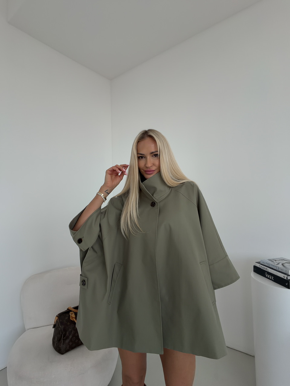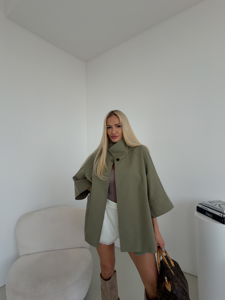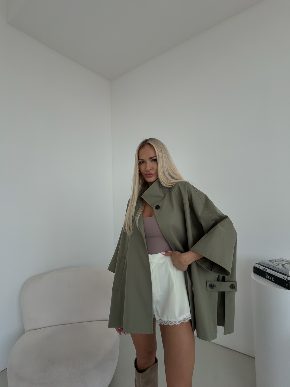 Krátky khaki trenčkot MANET