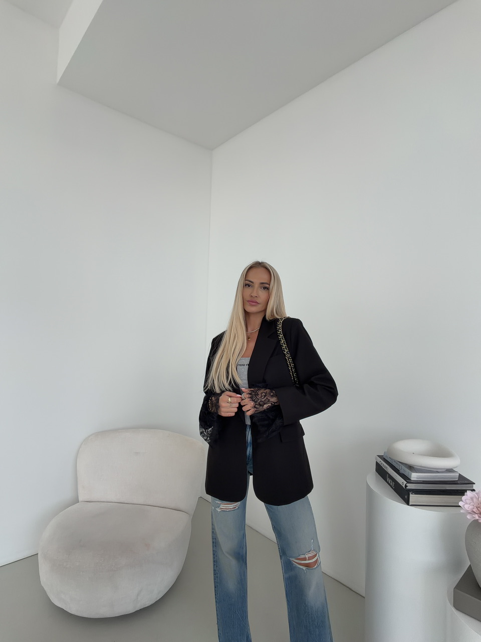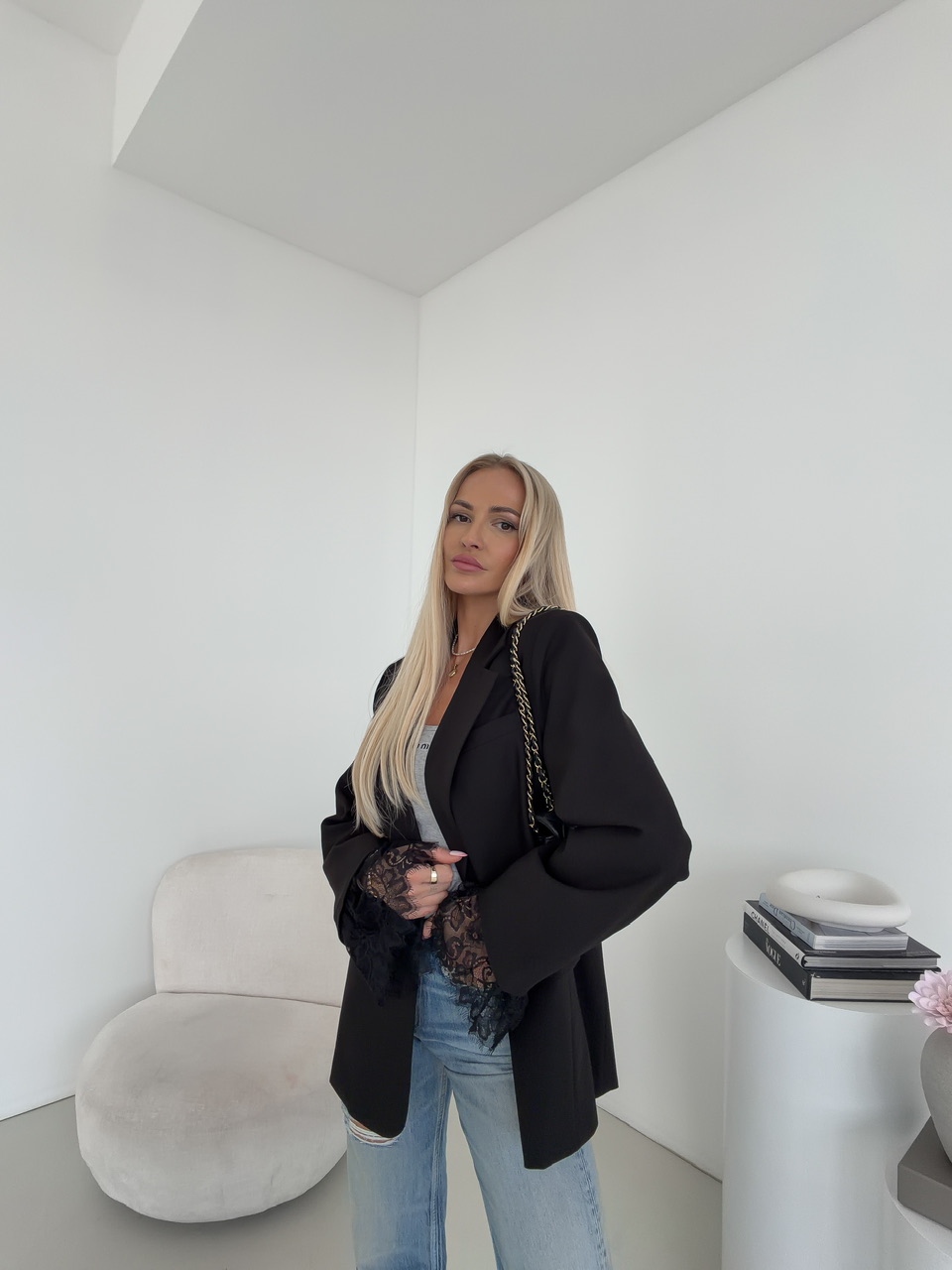 Modelka meria 168 cm a má na sebe veľkosť S/M